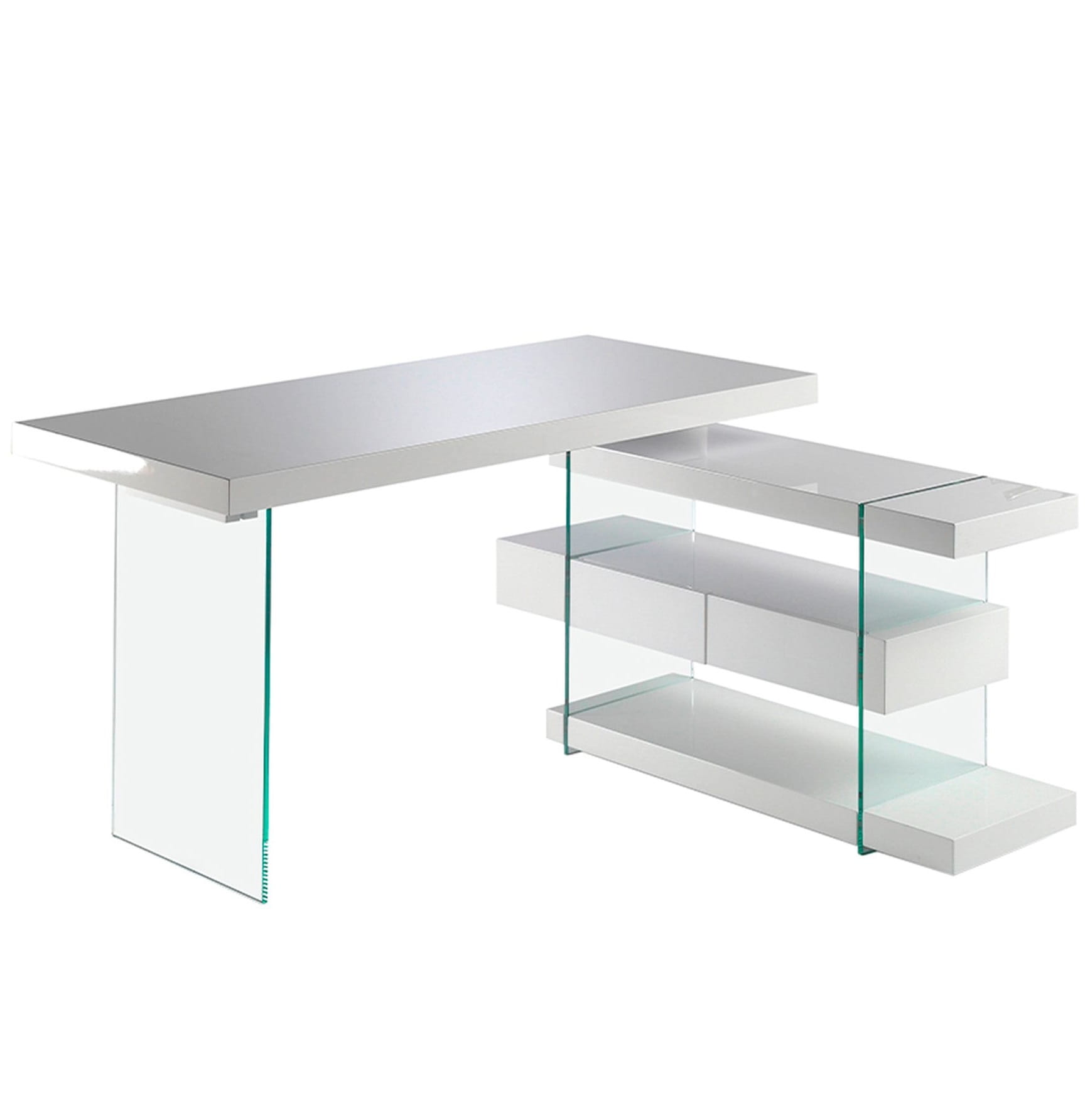 Olśniewająco nowoczesne i niezwykle eleganckie – to biurko to manifest minimalizmu w najbardziej wyrafinowanej odsłonie. Monochromatyczna biel łączy się tutaj z przezroczystymi elementami szklanymi, tworząc projekt lekki wizualnie, a zarazem solidny konstrukcyjnie. Geometryczne formy i harmonijne proporcje nadają mu architektonicznego charakteru. Zawieszone na transparentnych bokach segmenty półek i szuflad wydają się unosić w przestrzeni, jakby przeczyły grawitacji. Każdy element tej kompozycji został przemyślany tak, by zaspokoić potrzeby funkcjonalne, nie rezygnując przy tym z efektu „wow”. Lśniąca biel optycznie rozświetla wnętrze, wprowadzając aurę świeżości i porządku. To doskonały wybór dla miłośników współczesnego designu, którzy pragną stworzyć w swoim domu lub biurze miejsce pracy pełne światła, przestrzeni i kreatywnej energii.