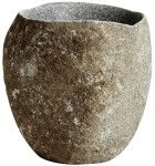 W kształcie nieregularnym, jakby wyrzeźbionym przez czas i naturę, ten cooler zachwyca autentycznością materiału. Matowa powierzchnia w odcieniach ziemi i popiołu przywodzi na myśl skałę wyłowioną z rzeki – szorstką, ale piękną w swej niedoskonałości. Jest czymś więcej niż naczyniem – to wyraz szacunku do natury i jej pierwotnych form. Idealnie wpisuje się w estetykę wabi-sabi, japandi czy rustykalnego minimalizmu. Może być surową dekoracją samą w sobie lub także oprawą dla suchych gałęzi, traw czy pojedynczych kwiatów.