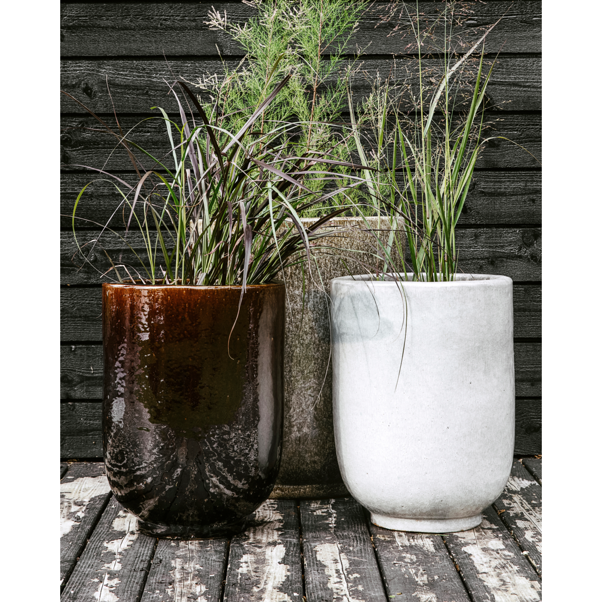 Jak głęboka nocna cisza przetkana światłem księżyca — ta doniczka skrywa w sobie poetycką opowieść o prostocie i pięknie natury. Jej szkliwiona powierzchnia, ciemna niczym ziemia po deszczu, mieni się subtelnymi refleksami światła, które tańczą po nieregularnych strukturach niczym wspomnienie porannej rosy. Ma w sobie coś pierwotnego, jakby została wydobyta z pradawnej pracowni garncarskiej, gdzie forma spotyka się z duszą materiału. To nie tylko doniczka — to intymna przestrzeń dla życia. To tło dla liści, łodyg i korzeni, które jak poezja rozwijają się w rytmie światła i czasu. Jej minimalistyczny kształt pozwala zieleni grać pierwsze skrzypce, a jednocześnie z elegancją uzupełnia każde wnętrze — od surowych loftów po przytulne, naturalne aranżacje. To przedmiot, który nie dominuje, lecz współistnieje. Uspokaja. Ugruntowuje. Zaprasza do zatrzymania się choćby na chwilę, by dostrzec piękno wzrastania — powolnego, cichego, ale nieustannego.