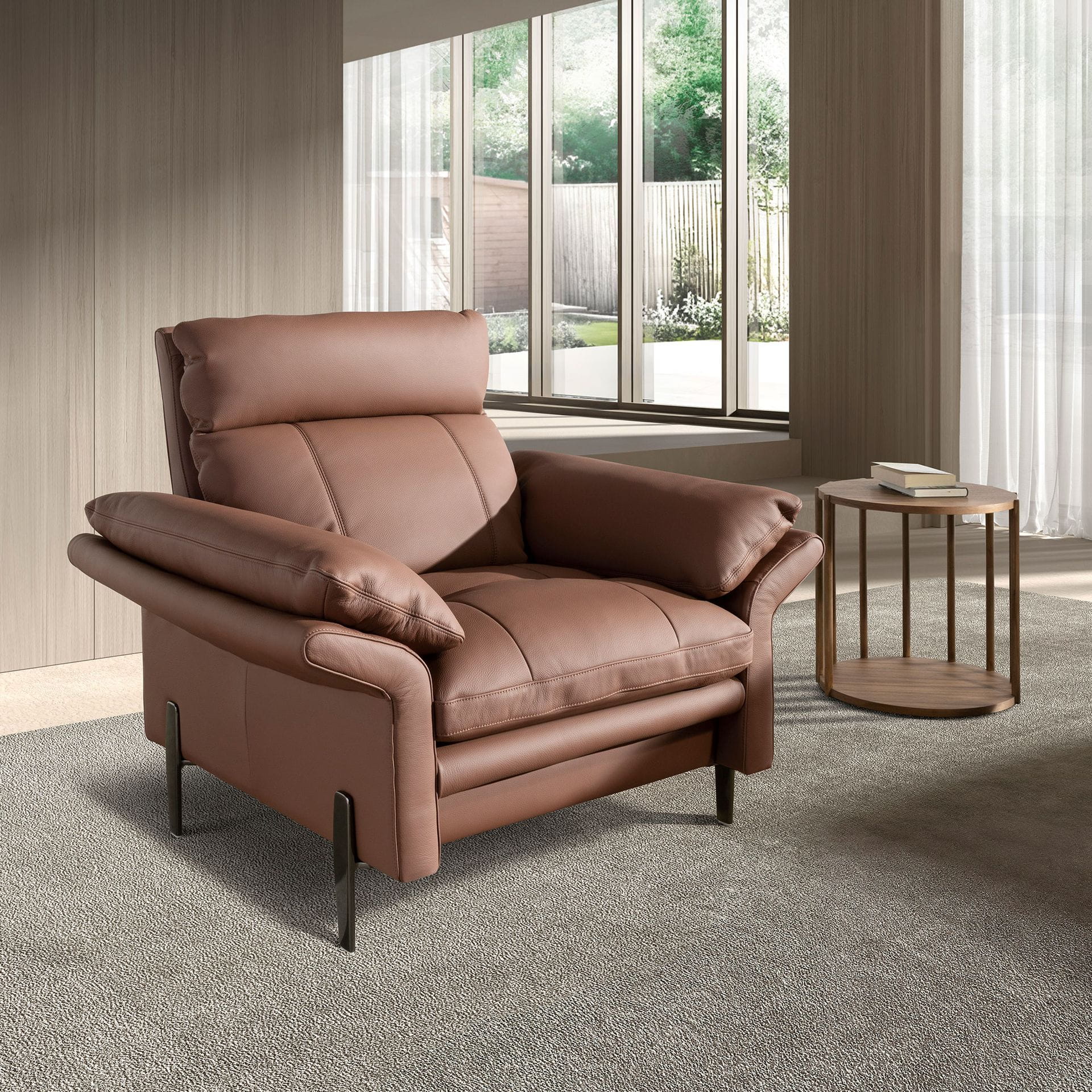 Obecność tego fotela w przestrzeni działa jak obietnica odpoczynku. Jego miękkie poduchy otulają ciało, pozwalając zanurzyć się w komforcie, który od pierwszej chwili koi zmysły. Szerokie podłokietniki przypominają skrzydła gotowe otoczyć spokojem, a głębokie siedzisko staje się bezpieczną przystanią po pełnym intensywności dniu. Subtelne przeszycia na oparciu i siedzisku wprowadzają delikatny rytm, nadając całości harmonijny charakter. To nie jest zwykły mebel, lecz miejsce, w którym czas zwalnia, a codzienność nabiera miękkich konturów. Elegancja formy spotyka się tu z troską o wygodę, tworząc idealną równowagę między estetyką a funkcjonalnością. Fotel zaprasza do tego, by usiąść, odetchnąć i pozwolić sobie na chwilę prawdziwego relaksu, czyniąc go nie tylko elementem wystroju, lecz także sercem domowej przestrzeni.