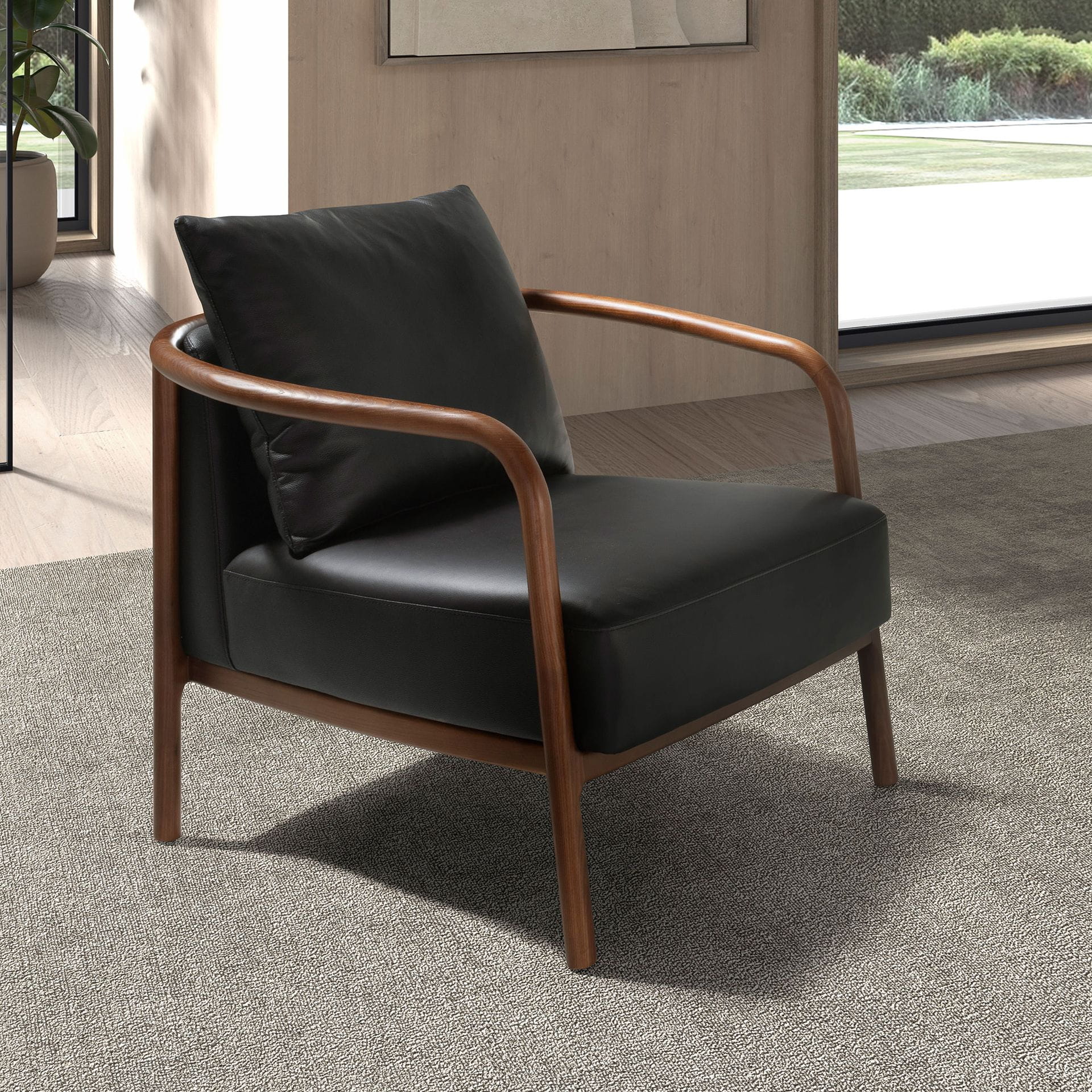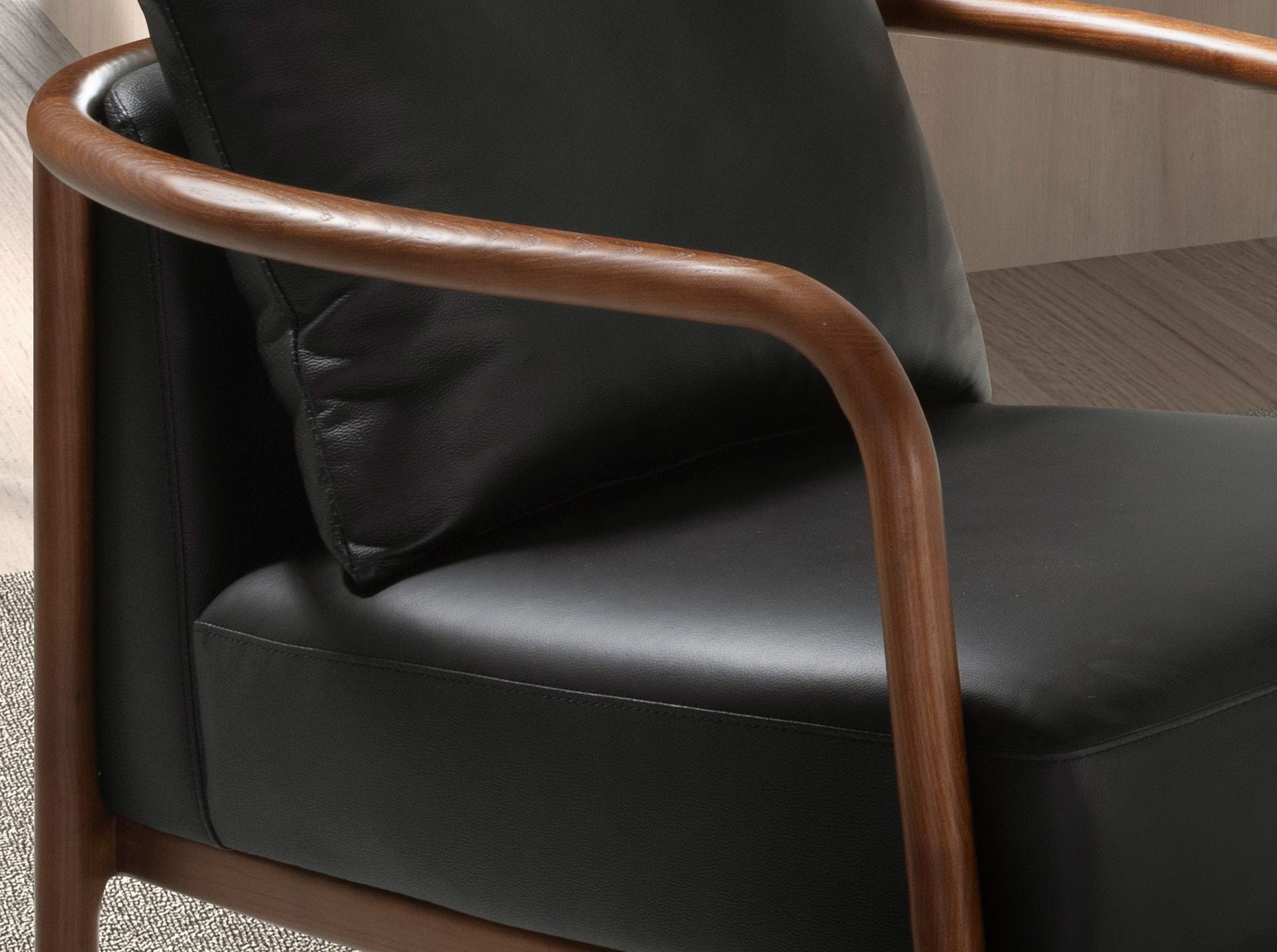 Fotel emanuje spokojem i miękką elegancją, łącząc naturalne ciepło drewna z subtelną nowoczesnością tapicerowanego siedziska. Zaokrąglone linie podłokietników tworzą harmonijną ramę, która płynnie otula całą konstrukcję, nadając jej lekkości i wyważonej proporcji. Obszerne, głęboko osadzone siedzisko zachęca, by zatrzymać się na chwilę i zanurzyć w miękkości. Poduszka o delikatnym połysku dodaje wrażenia przytulności, a jednocześnie podkreśla luksusowy charakter fotela. Drewniana podstawa, starannie wyprofilowana i solidna, wprowadza do formy naturalny rytm, który pięknie kontrastuje z gładką powierzchnią tapicerki. Całość prezentuje się wyjątkowo lekko, a jednocześnie stabilnie i dostojnie. To fotel, który łatwo staje się ulubionym miejscem w przestrzeni – zaprasza do odpoczynku, dodaje wnętrzu ciepła i subtelnej klasy, nie narzucając się, lecz harmonijnie otulając swoją obecnością.