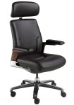 Smukła sylwetka i wyrafinowana forma tego fotela biurowego tworzą harmonijne połączenie komfortu i nowoczesnej elegancji. Tapicerowany miękką, wysokiej jakości skórą ekologiczną emanuje spokojem i prestiżem, który natychmiast nadaje przestrzeni profesjonalny, a zarazem przyjazny charakter. Delikatnie profilowane siedzisko i oparcie zostały zaprojektowane tak, by naturalnie dopasowywać się do ciała, oferując wsparcie nawet podczas długich godzin pracy. Zintegrowany zagłówek oraz ergonomiczne podłokietniki zwiększają komfort użytkowania, tworząc poczucie pełnego otulenia i stabilności. Każdy detal – od starannie poprowadzonych szwów po subtelne przejścia materiałów – świadczy o dbałości o jakość i funkcjonalność. Stalowa podstawa na kółkach dodaje lekkości wizualnej i zapewnia płynność ruchu, a jej połysk subtelnie kontrastuje z matową tapicerką. To fotel, który doskonale odnajdzie się zarówno w domowym gabinecie, jak i w eleganckiej przestrzeni biurowej. Łączy w sobie nowoczesny design, ergonomię i ponadczasowy styl, stając się nie tylko narzędziem pracy, lecz także elementem, który podkreśla charakter wnętrza i sprzyja skupieniu, wygodzie oraz codziennemu komfortowi.