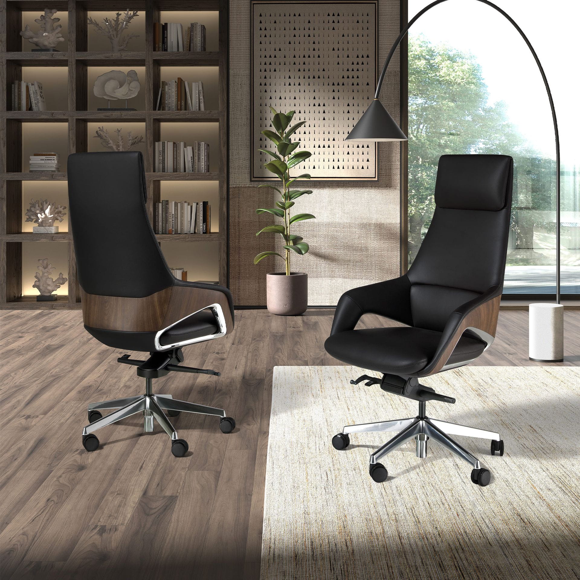 Elegancki fotel biurowy zaprojektowany z myślą o komforcie, który towarzyszy przez cały dzień pracy. Wysokie oparcie delikatnie podpiera plecy i kark, sprzyjając skupieniu i wygodzie nawet podczas długich godzin przy biurku. Płynne linie podłokietników przechodzą w obszerne siedzisko, tworząc harmonijną formę, która łączy nowoczesny design z ergonomią. Subtelne drewniane wykończenie po bokach dodaje charakteru i przełamuje techniczny styl metalowej, stabilnej podstawy na kółkach. Fotel biurowy, który wnosi do przestrzeni pracy nie tylko funkcjonalność, lecz także estetyczną równowagę. Idealny do gabinetu menedżerskiego lub eleganckiego biura domowego, gdzie każdy detal ma znaczenie, a komfort staje się naturalną częścią codzienności.