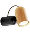 Miękki dialog światła i materii. Ciepłe drewno otula źródło blasku, podczas gdy matowa czerń tworzy dla niego spokojne tło. Forma jest prosta, niemal intuicyjna, a lekko wygięty detal łączy oba elementy w harmonijną całość. Światło nie narzuca się — sączy się delikatnie, budując nastrój i podkreślając faktury wnętrza. To oprawa, która nie dominuje przestrzeni, lecz ją dopełnia, wprowadzając równowagę między naturalnością a nowoczesną precyzją. Idealna tam, gdzie liczy się detal, cisza i świadomy gest designu.