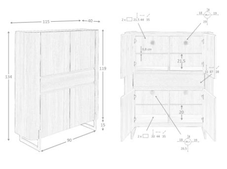 Wymiary: 115 x 40 x 134 cm