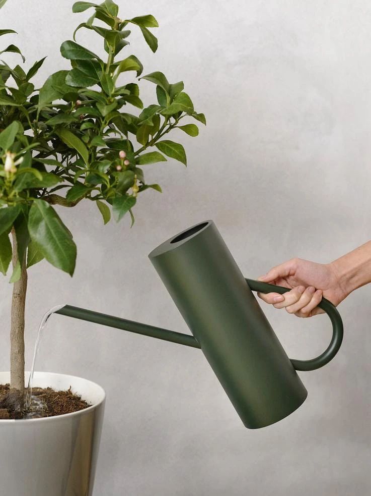 Bloom to stylowa konewka wykonana z malowanej proszkowo stali nierdzewnej w eleganckim odcieniu. Zaprojektowana przez niemiecki duet Böttcher & Kayser, łączy minimalistyczną formę z funkcjonalnością, inspirując się ponadczasowym designem i nawiązując do klasycznego dzbanka próżniowego EM77 marki Stelton. Dzięki cylindrycznym kształtom, płynnie przechodzącym od uchwytu do wylewki, konewka Bloom nie tylko doskonale spełnia swoją rolę, ale także stanowi estetyczny element dekoracyjny. Precyzyjna, długa wylewka pozwala podlewać nawet najmniejsze doniczki bez rozlewania. Antypoślizgowa silikonowa mata pod dnem zapewnia stabilność, a ergonomiczny uchwyt gwarantuje wygodne i dobrze wyważone podlewanie. To doskonały pomysł na prezent dla miłośników roślin, na Dzień Matki lub jako elegancki dodatek do wnętrza.