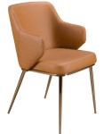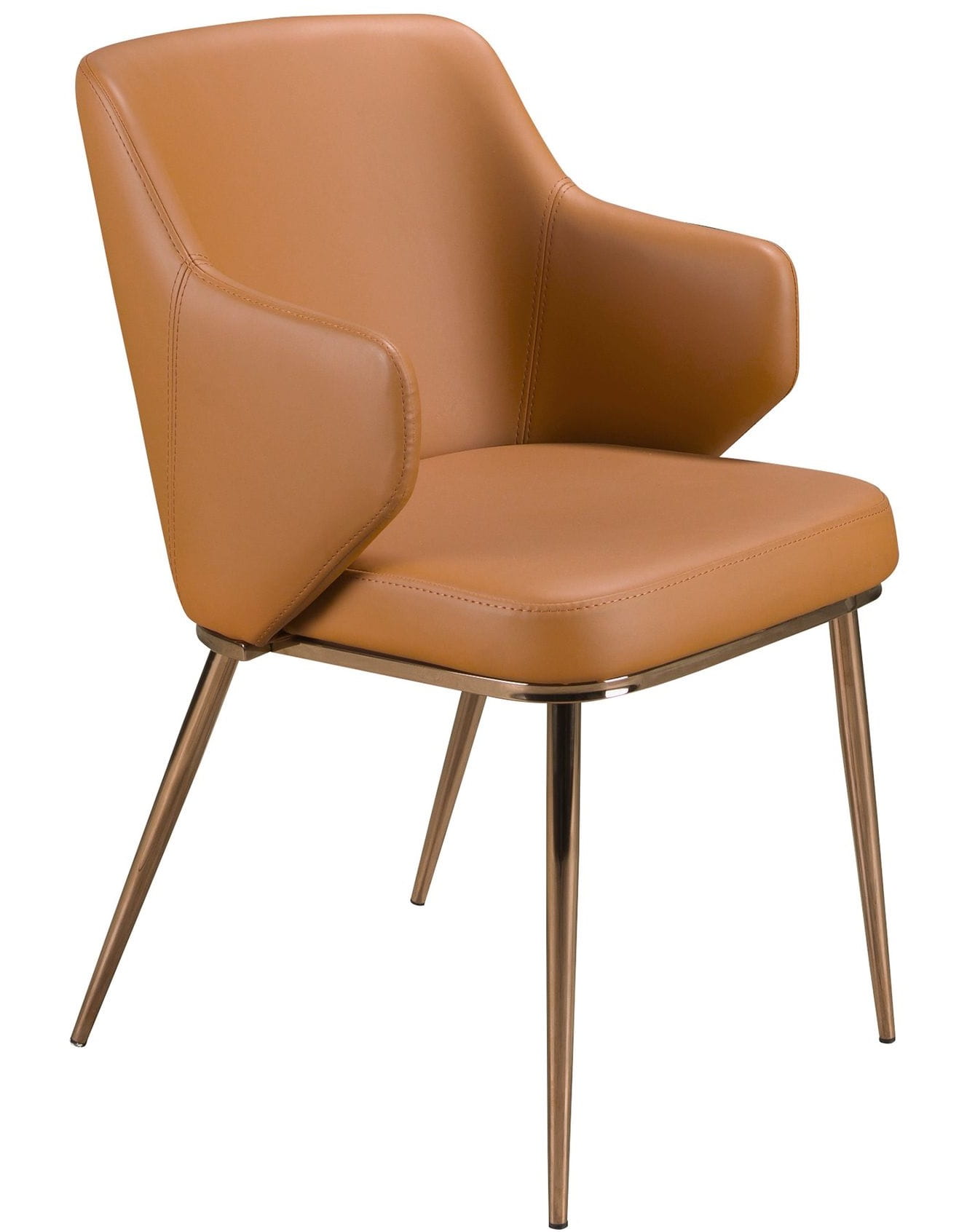 Delikatna linia i rzeźbiarska forma łączą się tu w hołdzie dla elegancji i komfortu. Krzesło od Angel Cerdá, tapicerowane karmelową skórą ekologiczną, to esencja współczesnego luksusu zamknięta w minimalistycznej bryle. Subtelnie profilowane oparcie i szerokie podłokietniki otulają sylwetkę, oferując wygodę, która zaskakuje swoją lekkością. Smukłe, połyskujące nogi w odcieniu miedzianego brązu dodają mu biżuteryjnego wyrazu i wprowadzają nutę nowoczesnej finezji. To krzesło nie potrzebuje rozgłosu — wystarczy spojrzenie, by zrozumieć, że mamy do czynienia z przedmiotem wyrafinowanym. Idealne do jadalni, w której design spotyka się z codziennym rytuałem.