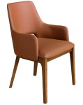 To nowoczesne krzesło to połączenie luksusu, komfortu i funkcjonalności. Jego ergonomiczne siedzisko i wysokie oparcie, pokryte wysokiej jakości ekologiczną skórą w odcieniu ciepłego brązu, zapewniają wygodę i wyjątkowy styl. Dekoracyjne przeszycia dodają mu subtelnej elegancji, podkreślając staranność wykonania. Solidna drewniana rama o naturalnym wykończeniu nadaje krzesłu stabilność oraz ciepły, organiczny charakter. Dzięki ponadczasowej formie doskonale komponuje się zarówno w nowoczesnych, skandynawskich, jak i klasycznych wnętrzach – sprawdzi się w jadalni, salonie czy gabinecie. To krzesło to idealne rozwiązanie dla tych, którzy szukają elegancji połączonej z wygodą i trwałością. Ponadczasowy design i dbałość o detale czynią je wyjątkowym elementem każdej aranżacji.