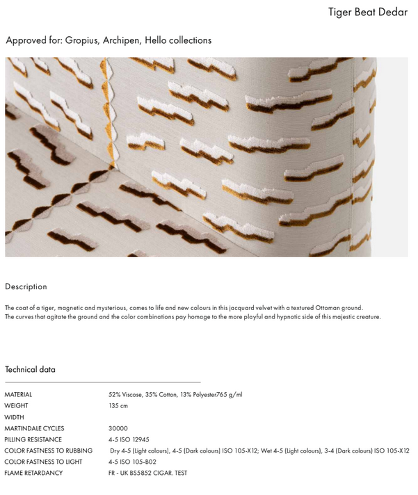Materiał: stal, drewno, sklejka, tkanina Tiger Beat Dedar