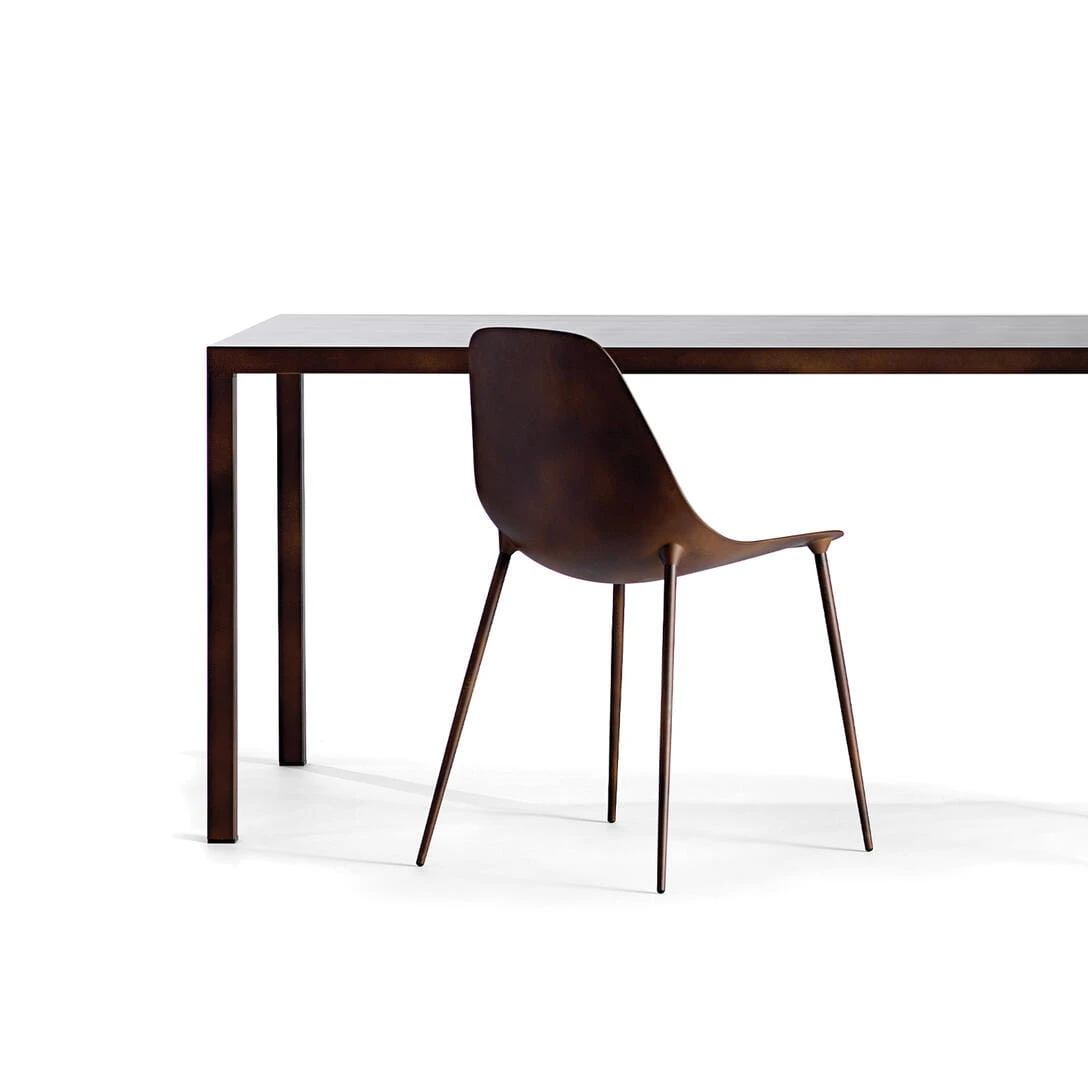 Subtelne, a zarazem wyraziste – to krzesło emanuje naturalnym ciepłem i ponadczasową elegancją. Metaliczny brąz o lekko satynowym wykończeniu nadaje mu szlachetności, a płynna linia siedziska i oparcia tworzy harmonijną, niemal rzeźbiarską formę. W tej prostocie kryje się esencja włoskiego designu – wyważenie pomiędzy funkcją a emocją, między formą a dotykiem. Smukłe nogi nadają konstrukcji lekkości, podczas gdy organiczny kształt zaprasza do odpoczynku i kontemplacji. To mebel, który potrafi wtopić się w przestrzeń, ale i nadać jej charakter – niczym detal biżuterii w doskonale skrojonym stroju. Elegancja, która nie potrzebuje nadmiaru – tylko perfekcji w każdym detalu.