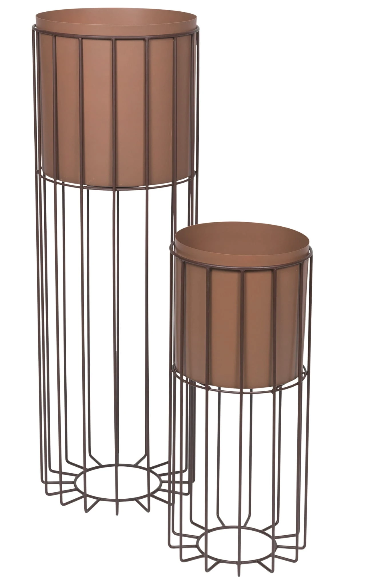 Piękny, minimalistyczny kwietnik wykonany ze stali malowanej proszkowo. Ażurowa podstawa stabilnie podtrzymuje metalowy pojemnik ( donicę ) którą