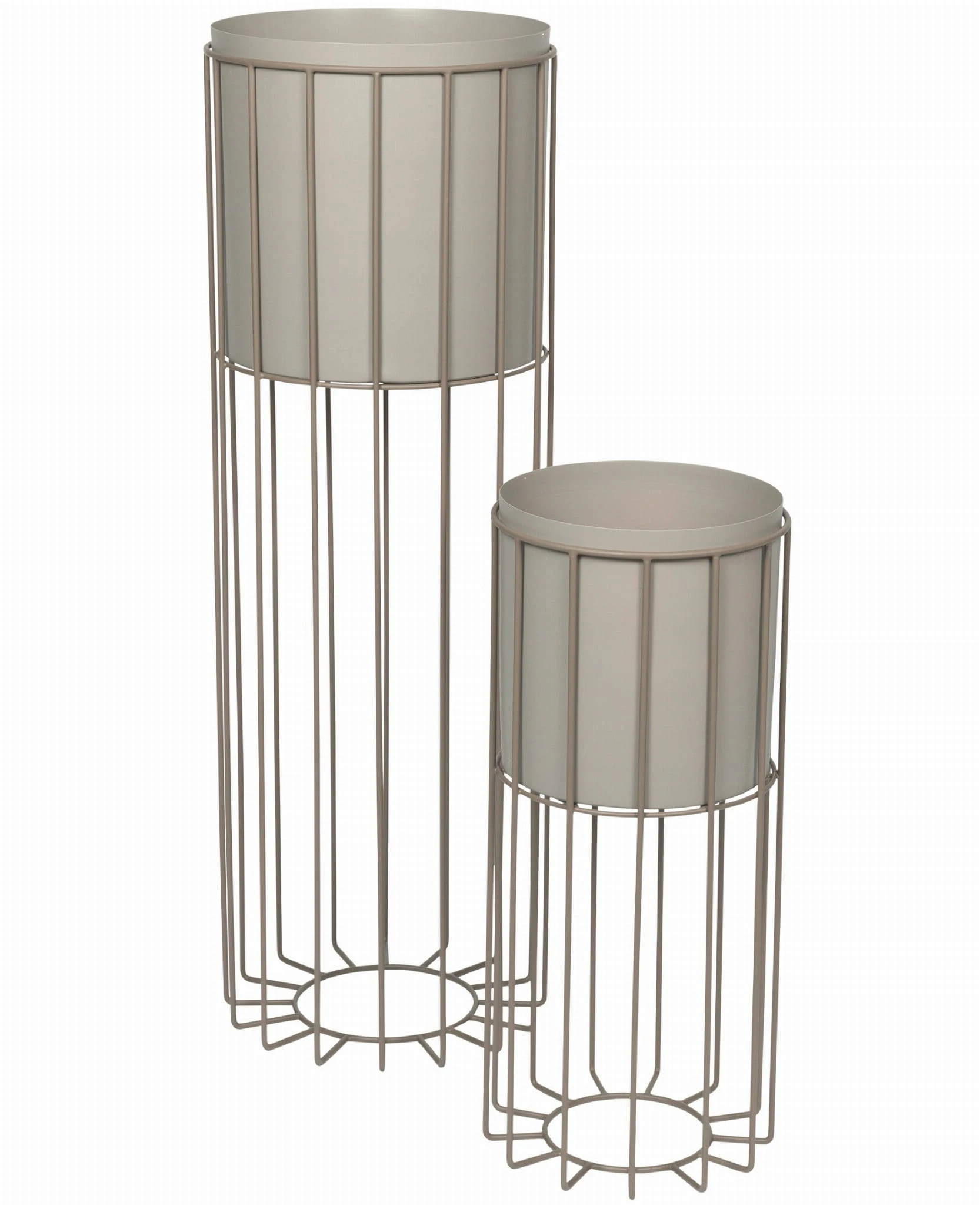 Piękny, minimalistyczny kwietnik wykonany ze stali malowanej proszkowo. Ażurowa podstawa stabilnie podtrzymuje metalowy pojemnik ( donicę ) którą