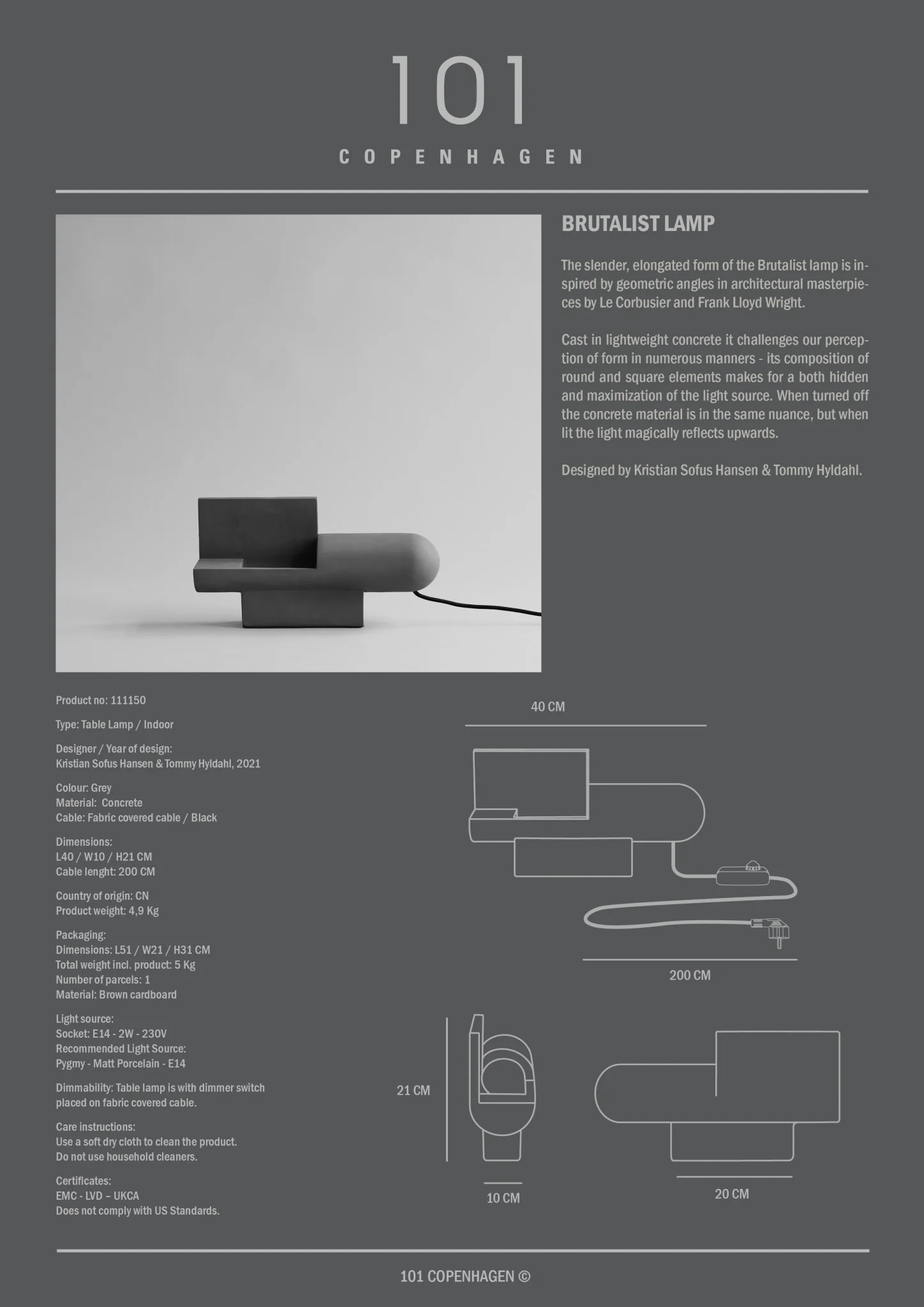 Lampa stołowa Brutalist 101Copenhagen