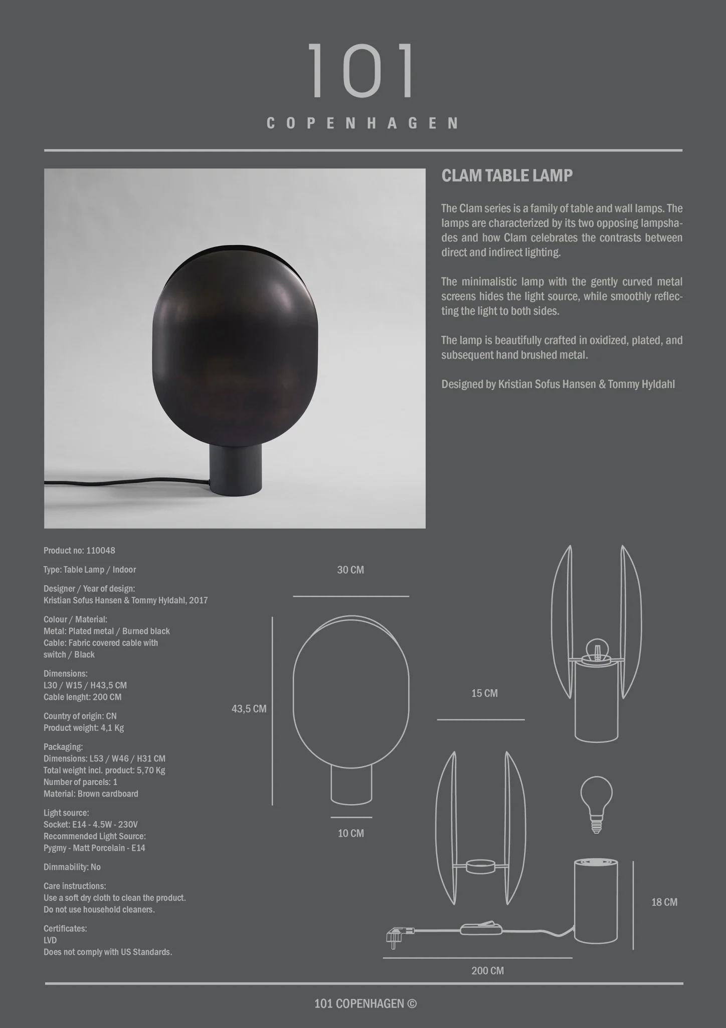 Lampa stołowa Clam 44 x 30 x 15 cm 101Copenhagen