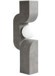 Sitting Man to rzeźbiarska forma, w której światło zostaje osadzone w architektonicznej bryle. Monumentalny blok o wyrazistych, geometrycznych cięciach skrywa kulisty klosz, niczym świetlny punkt zawieszony w strukturze z betonu. Surowość materiału kontrastuje z miękkością szkła, tworząc napięcie pomiędzy ciężarem a lekkością, monumentalnością a intymnością. To obiekt balansujący pomiędzy rzeźbą a funkcjonalnym źródłem światła, wprowadzający do wnętrza atmosferę współczesnej galerii designu.