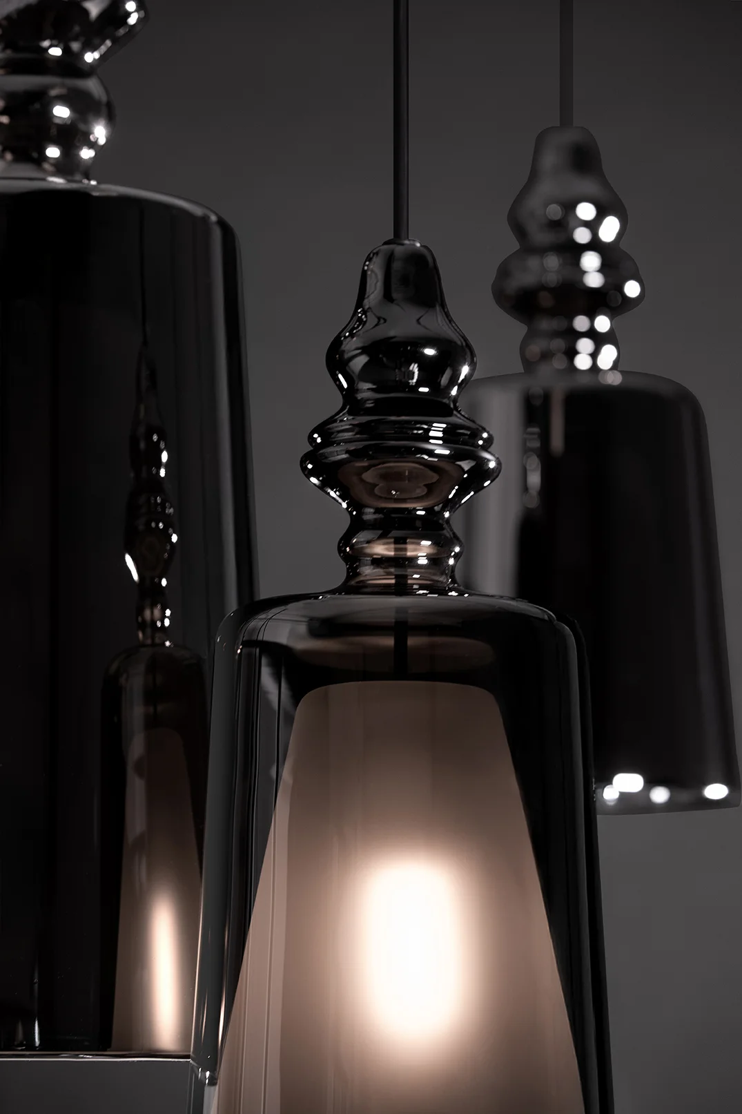 Ikoniczna forma zyskuje tu nową, świetlistą odsłonę. Projekt autorstwa Matteo Ugoliniego, znany z charakterystycznej sylwetki, został reinterpretowany w szkle borokrzemowym, które nadaje lampie wyjątkowej lekkości i transparentności. Światło przenika przez jej strukturę, tworząc subtelne refleksy i delikatną grę odbić. Rzeźbiarska kompozycja, złożona z rytmicznie ułożonych elementów, przywodzi na myśl klasyczne formy, jednocześnie pozostając wyraźnie współczesna. To właśnie ten balans między tradycją a nowoczesnością nadaje lampie ponadczasowy charakter. Dostępna w różnorodnych wariantach – od transparentnych, przez przydymione, aż po odcienie różu, turkusu czy wykończenie niklowane – pozwala dopasować ją do różnych przestrzeni i nastrojów. W każdej wersji zachowuje jednak swoją unikalną, świetlistą tożsamość. Doskonale odnajduje się zarówno w prywatnych wnętrzach, jak i przestrzeniach komercyjnych, gdzie staje się nie tylko źródłem światła, ale także wyrazistym elementem dekoracyjnym. To lampa, która nie tylko oświetla – buduje atmosferę, podkreśla detale i nadaje wnętrzu wyjątkowy, nieco teatralny charakter.