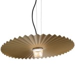 Gonzaga to lampa wisząca, w której prostota formy spotyka się z wyrazistą, niemal teatralną ekspresją. Inspirowana surową paletą barw, łączy matowe aluminium w odcieniach bieli, czerni i mosiądzu z delikatnie plisowaną strukturą, otulającą szklany, dmuchany dyfuzor. Jej sylwetka jest oszczędna, a jednocześnie pełna ruchu – dzięki stałemu mechanizmowi może być swobodnie ukierunkowana w przestrzeni, tworząc dynamiczną grę światła i cienia. To właśnie ten kontrast nadaje jej wyjątkowy charakter, jakby światło nieustannie przesuwało się po powierzchni, zmieniając atmosferę wnętrza. Dostępna w dwóch rozmiarach, odnajduje się zarówno we wnętrzach, jak i na zewnątrz – w przestrzeniach, które potrzebują subtelnego, ale wyrazistego akcentu.