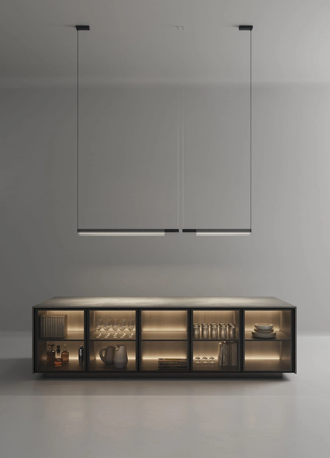 Czysta linia zawieszona w przestrzeni – niemal graficzny gest, który przecina ją z lekkością i precyzją. Forma oszczędna, a jednocześnie wyrazista, skupiona na tym, co najważniejsze – świetle i jego obecności. Groove ukazuje czystość szkła poprzez powierzchnię rytmicznie żłobioną delikatnymi, podłużnymi liniami. To one kształtują światło, rozszczepiają je i prowadzą, tworząc subtelne refleksy i miękkie przejścia. W tej prostocie kryje się dyscyplina i elegancja – rygor formy ubrany w świetlistą, wyrafinowaną strukturę. Minimalizm spotyka się tu z lekkością, a anodowane elementy aluminiowe dopełniają całość, nadając jej współczesny, dopracowany charakter. To światło, które nie potrzebuje nadmiaru – wystarczy linia, proporcja i detal.