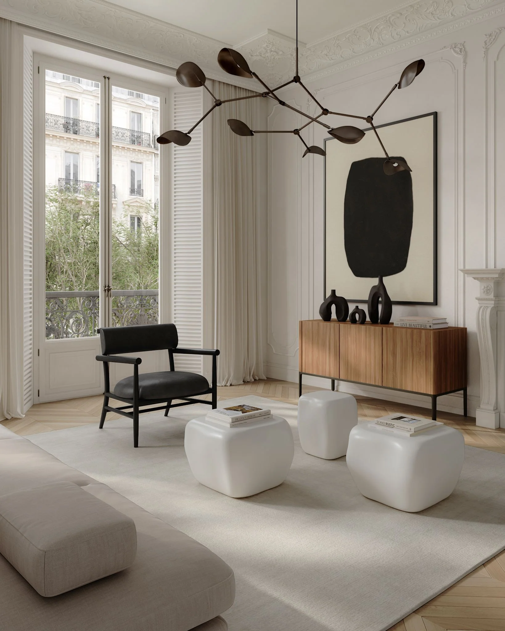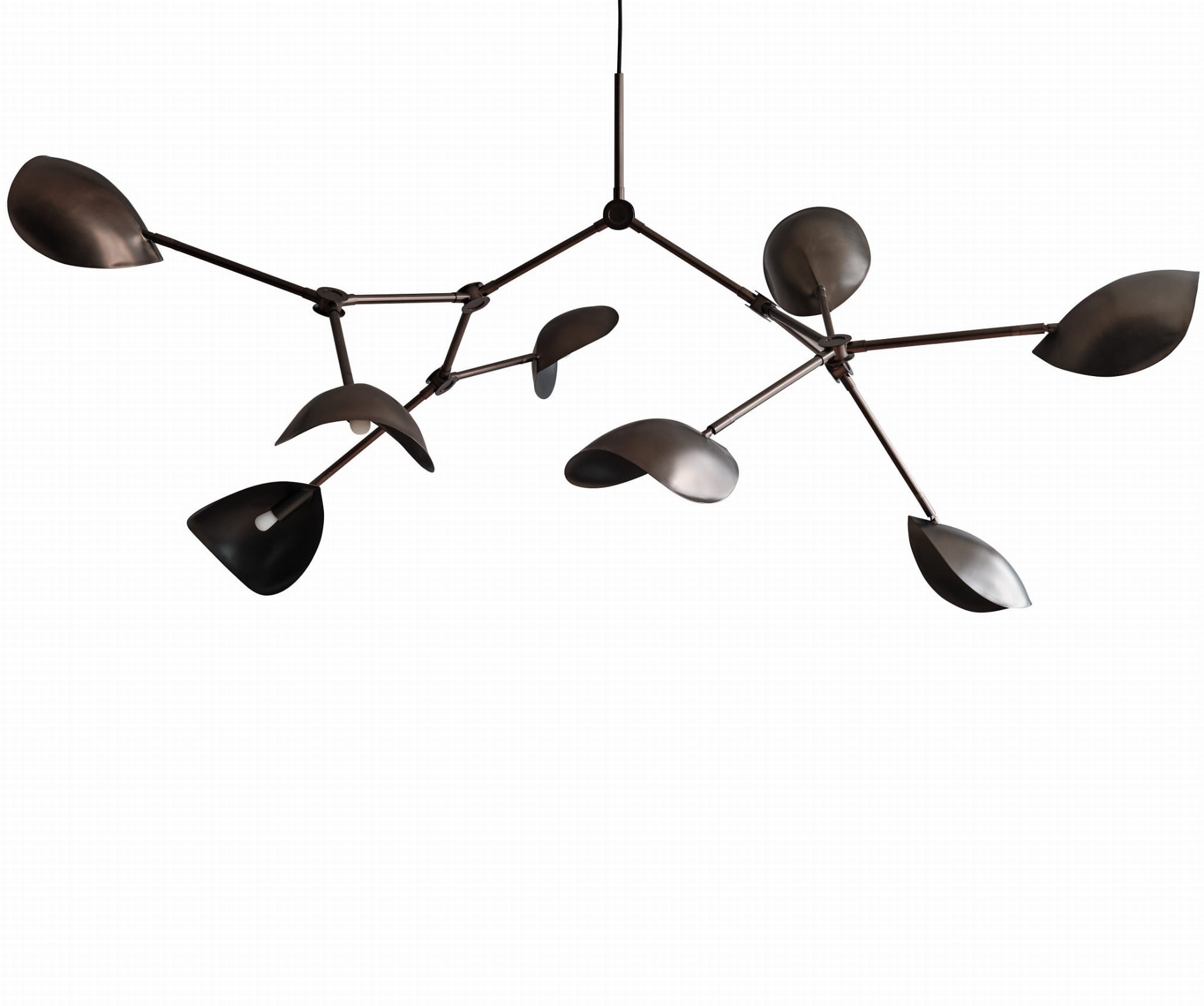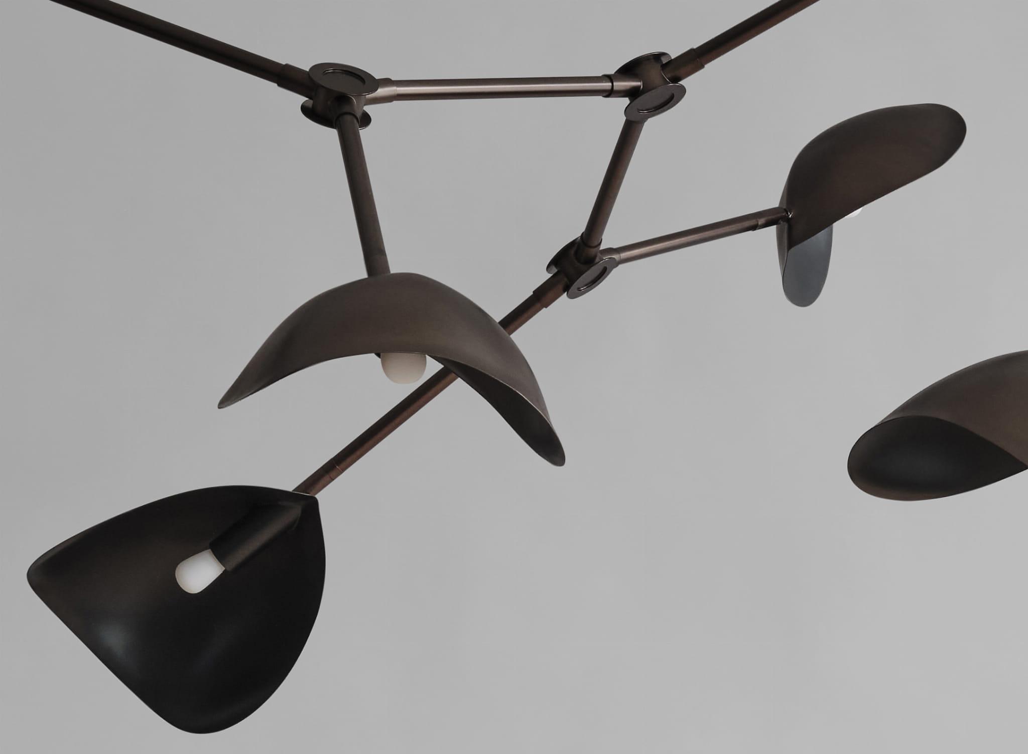 Stingray to rzeźbiarska forma, która zatrzymuje w metalu esencję ruchu i lekkości. Ramiona lampy układają się w dynamiczną kompozycję, niczym organiczny szkic w przestrzeni, a klosze przypominające skrzydła płaszczki balansują pomiędzy światłem a cieniem. Matowy brąz pochłania blask, nadając całości aurę tajemniczości i głębi, jednocześnie podkreślając architektoniczny charakter konstrukcji. To oprawa, która nie tylko oświetla, lecz także opowiada historię o harmonii pomiędzy naturą a geometrycznym porządkiem.