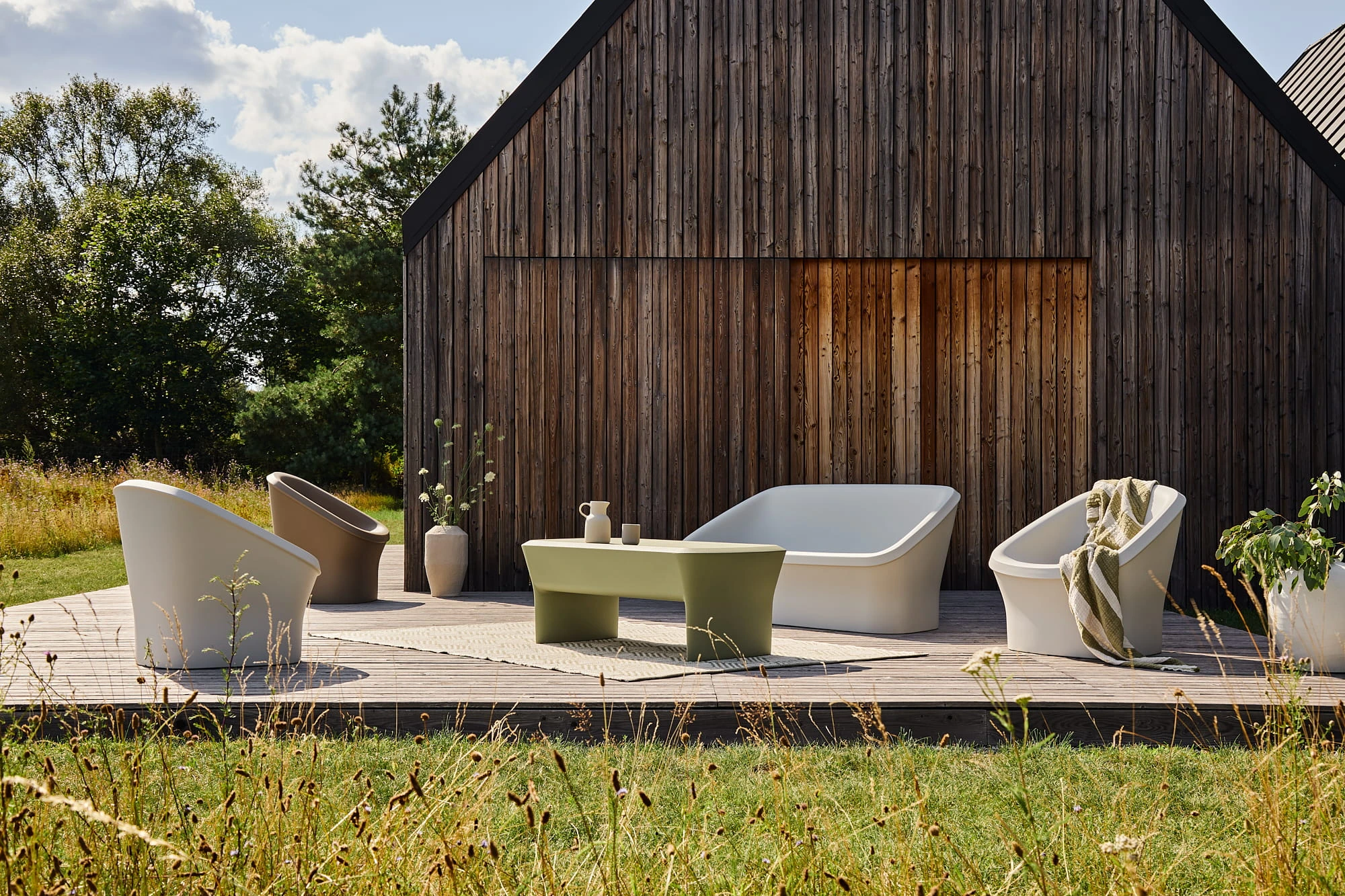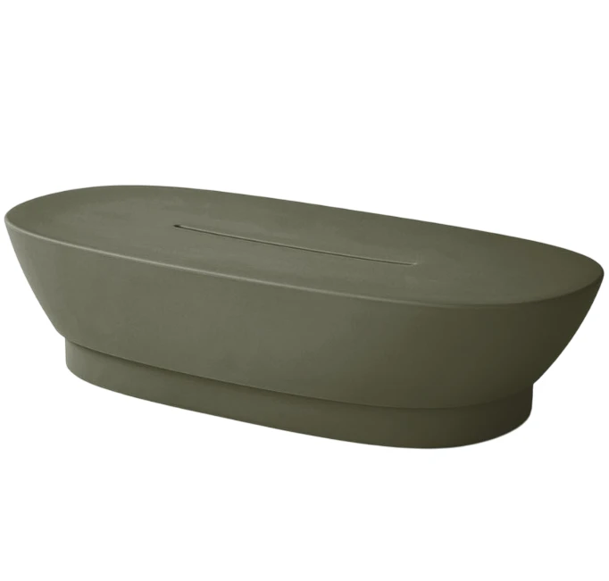 Delikatnie zaokrąglona linia blatu przypomina spokojną taflę jeziora, na której każdy gest i przedmiot odnajduje swoje miejsce. Ten stolik kawowy, niczym współczesna rzeźba, łączy w sobie subtelność formy z niezachwianą stabilnością. Harmonijnie wyważone proporcje i miękka, organiczna sylweta wprowadzają do przestrzeni atmosferę wyciszenia i elegancji. Zaprojektowany z myślą o chwili wytchnienia, przy porannej kawie lub wieczornym kieliszku wina, staje się sercem spotkań i dyskretnym towarzyszem codzienności. Jego odporność na warunki atmosferyczne czyni go równie pięknym pod gołym niebem, jak i w domowym wnętrzu. To mebel, który nie potrzebuje słów, by opowiedzieć historię o stylu i harmonii. Wykonana z wysokiej jakości polietylenu, gwarantuje odporność na zmienne warunki pogodowe i ekstremalne temperatury — od -30 do 60˚C. Co więcej, produkty są w 100% nadające się do recyklingu, a sam materiał ECO zawiera 30% polietylenu pochodzącego z odzysku — to piękno w służbie natury.