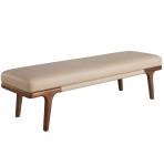 Ławka ta zachwyca swoją prostotą i wyrafinowaniem, które spotykają się w harmonijnym dialogu materiałów i form. Smukłe siedzisko, miękko tapicerowane i gładko wykończone, rozciąga się w eleganckiej linii, podparte subtelnie rzeźbioną ramą z drewna. Konstrukcja emanuje równowagą – solidną, lecz nieciężką, trwałą, lecz pozbawioną sztywności. Jej obecność w przestrzeni wprowadza spokój i porządek. W przedpokoju staje się zaproszeniem do zatrzymania się na chwilę, w sypialni – dyskretnym towarzyszem codziennych rytuałów, a w salonie – elementem, który naturalnie dopełnia całość aranżacji. Ławka nie szuka uwagi, ale jej forma przyciąga wzrok i zachwyca swoją lekkością. To mebel, który łączy funkcjonalność z pięknem czystej linii. Wyważony, elegancki, ponadczasowy – staje się nie tylko praktycznym rozwiązaniem, lecz także wyrazem subtelnej poezji w codziennym użytkowaniu.