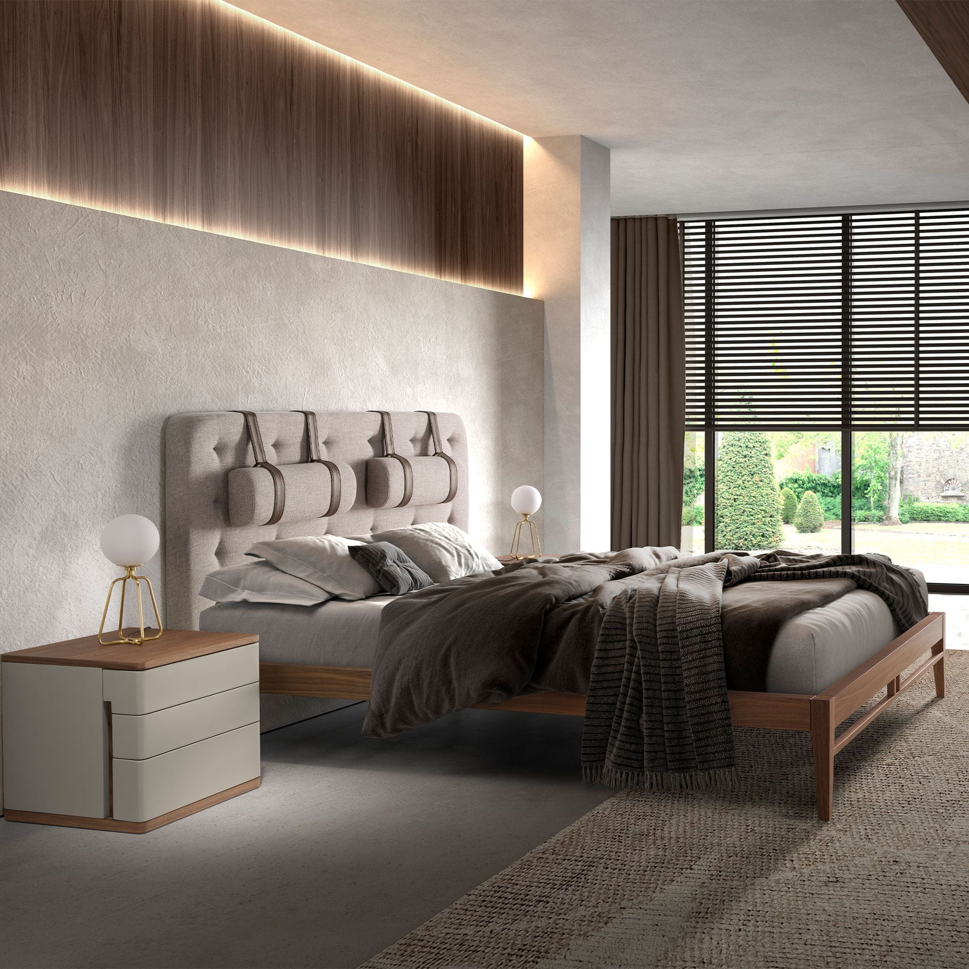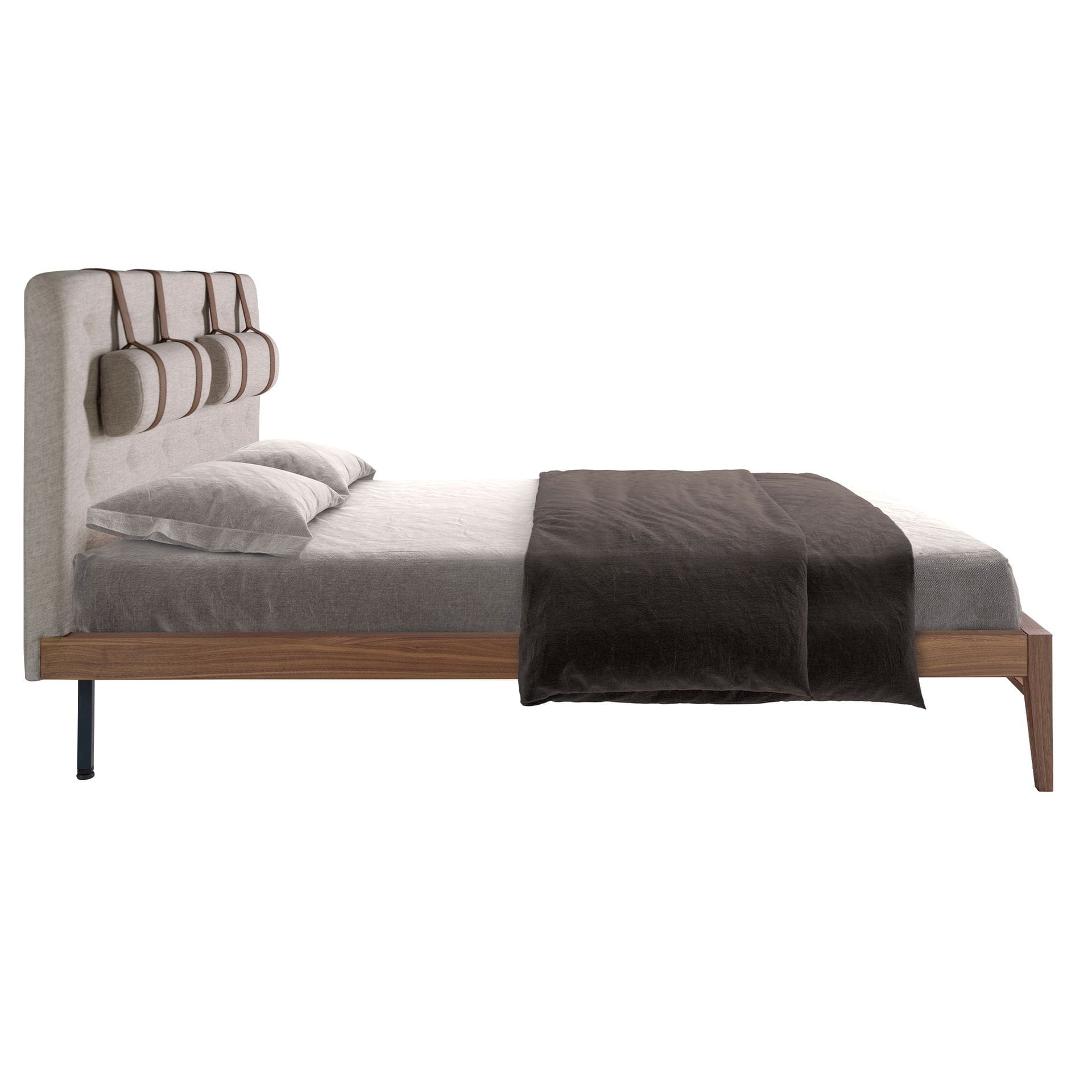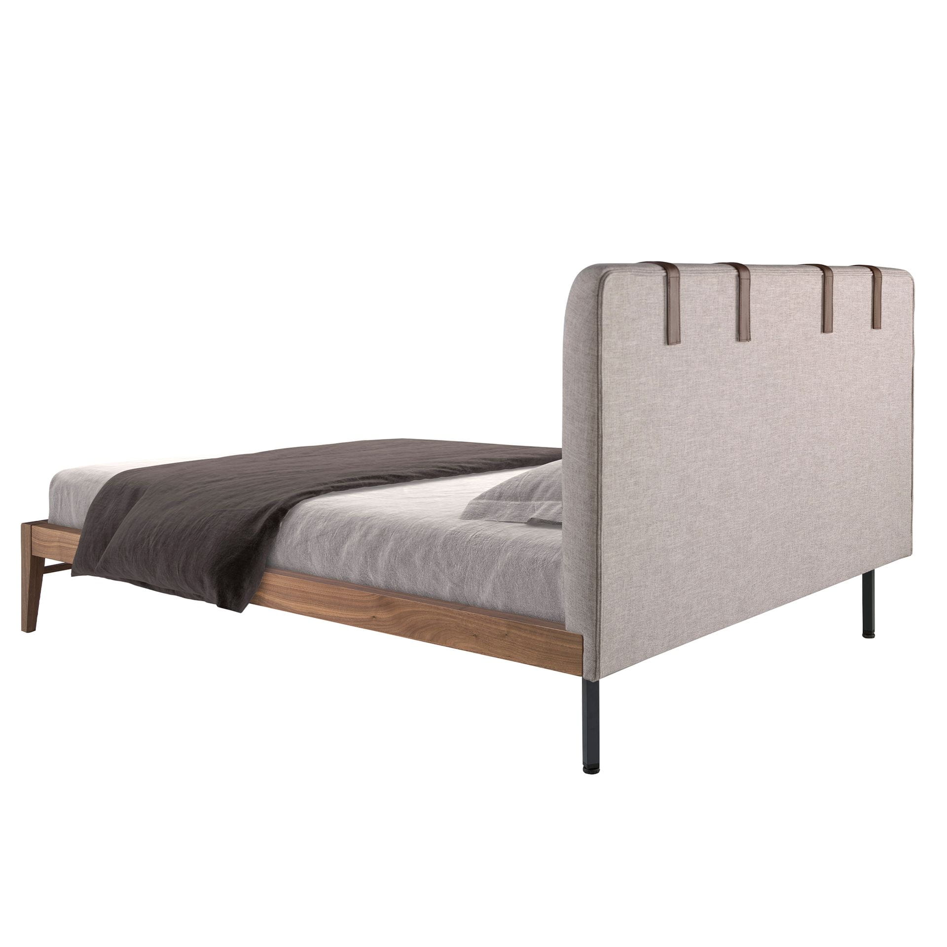 To łóżko to esencja nowoczesnej elegancji połączonej z wyrafinowanym komfortem. Miękki, tapicerowany zagłówek, ozdobiony stylowymi skórzanymi paskami,
