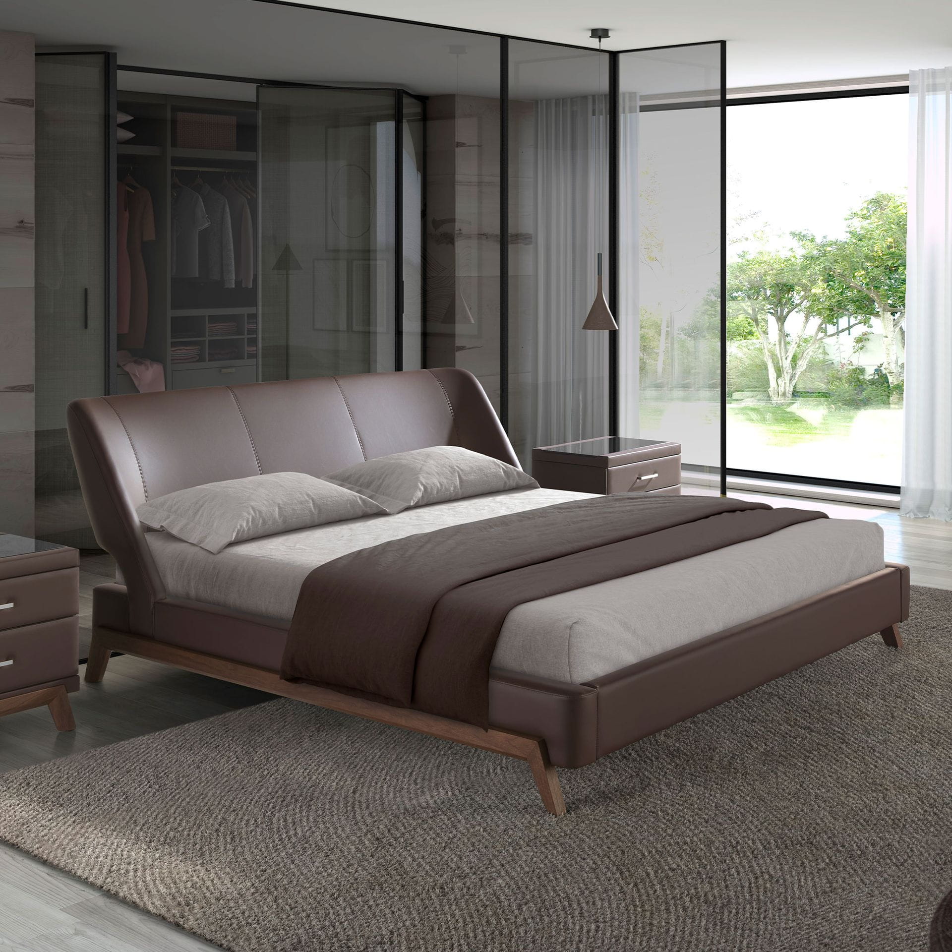 To łóżko nie potrzebuje ozdób – jego siłą jest forma. Harmonijnie wyprofilowany zagłówek w odcieniu czekoladowego brązu oplata poduszki jak ramiona ciszy, zapraszając do wieczornego ukojenia. Skórzane obicie o satynowym połysku podkreśla jego luksusowy charakter, nie przytłaczając – przeciwnie, łagodnie wpisuje się w przestrzeń sypialni. Delikatnie rozszerzające się ku dołowi drewniane nogi tworzą stabilną, ale lekką podstawę, która subtelnie nawiązuje do skandynawskiego modernizmu. To mebel z duszą – łączący tradycję stolarskiego kunsztu z nowoczesnym wyczuciem komfortu. W sypialni z takim łóżkiem sen staje się rytuałem, a poranek – obietnicą piękna.