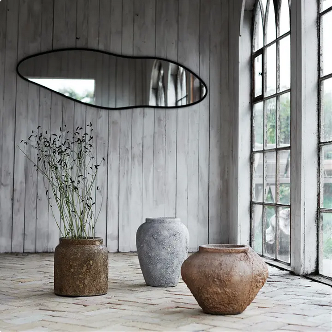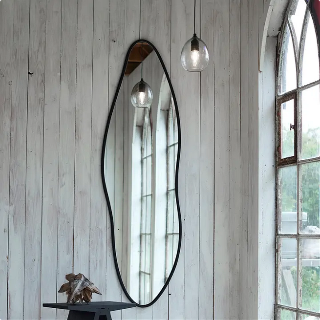 Inspirowane naturą, jakby ukształtowane przez wodę lub wiatr – to lustro zachwyca swoją nieregularną, falującą linią. Ramka w matowej czerni podkreśla jego artystyczny charakter, nadając mu wyrazistość bez utraty lekkości. Doskonale odnajduje się w nowoczesnych, kreatywnych wnętrzach – od minimalizmu po eklektyczne aranżacje. Może zawisnąć pionowo lub poziomo, tworząc płynny, dynamiczny akcent na ścianie. To nie tylko funkcjonalny przedmiot, ale i dekoracyjna rzeźba światła – odbijająca przestrzeń w nieoczywisty sposób.