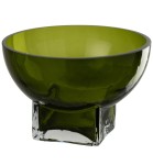 Szlachetny odcień głębokiej zieleni otula szkło niczym światło przenikające przez liście o poranku. Misa zdaje się zatrzymywać w sobie oddech natury — intensywna barwa wewnątrz emanuje świeżością, podczas gdy zewnętrzna, ciemniejsza powłoka tworzy wrażenie tajemniczej głębi. Osadzona na krystalicznej, geometrycznej podstawie, unosi się delikatnie ponad powierzchnią, jakby w zawieszeniu między lekkością a masą. Przejrzyste szkło podstawy pozwala światłu przenikać przez strukturę, tworząc subtelne refleksy i zmienne cienie, które dodają całości elegancji i rytmu. To przedmiot, który łączy prostotę formy z wyrazistą osobowością — harmonijny, pełen spokoju, a jednocześnie wyrazisty jak akcent kolorystyczny w starannie zaprojektowanym wnętrzu. Świadoma ozdoba, która wnosi do przestrzeni świeżość, zmysłowość i odrobinę poetyckiej magii.