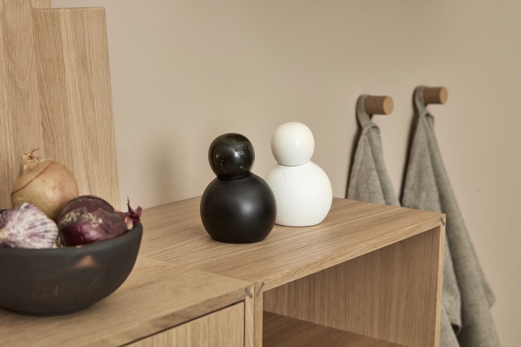 dębowego. Ze względu na ręczne wykonanie każdy młynek jest wyjątkowy. Boogie jest dostępny w kolorze czarnym lub białym i został zaprojektowany