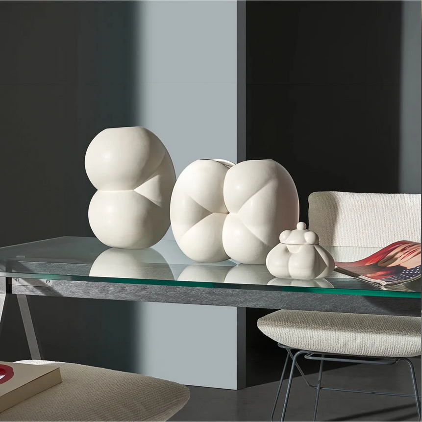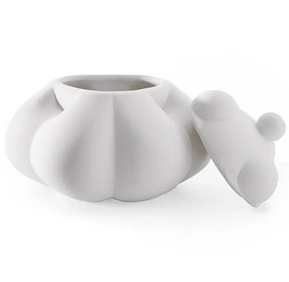 Pojemnik Amelia z kolekcji Peaches to małe dzieło sztuki użytkowej, które przyciąga wzrok swoją organiczną formą i miękkimi liniami. Jakby wyrzeźbiony z obłoku, o nieregularnej, lecz harmonijnej sylwetce, przypomina owocowy pąk lub rzeźbiarską interpretację kwiatu – zamkniętą w zmysłowej bieli. Znakomicie odnajdzie się zarówno w kuchni, jak i na toaletce – może skrywać cukierki, biżuterię lub inne drobiazgi. Amelia nie tylko przechowuje, ale też dekoruje, wprowadzając do wnętrza nutę bajkowego uroku i nowoczesnej poezji formy.