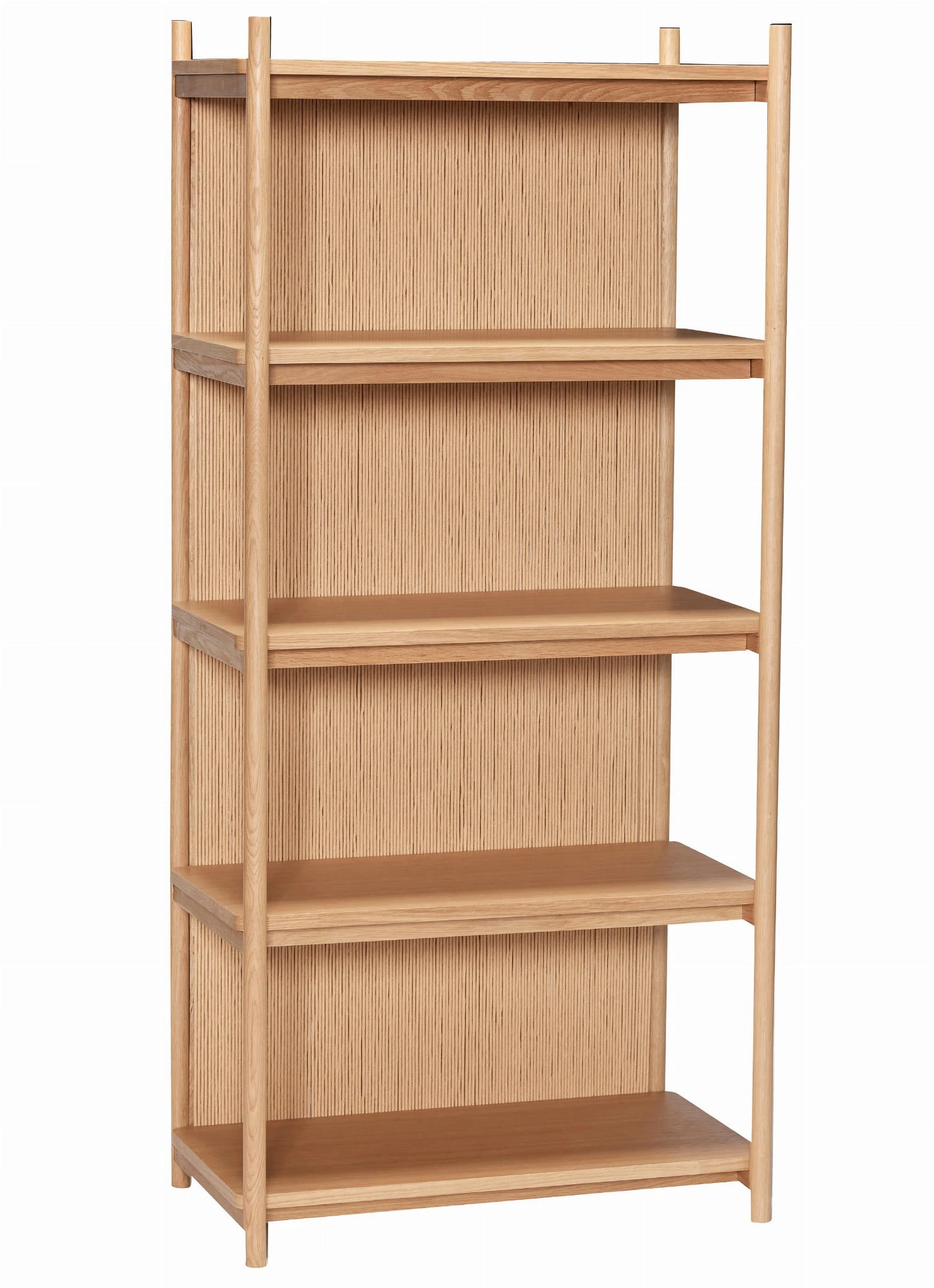 Dodaj odrobinę ponadczasowej elegancji do swojego domu dzięki temu regałowi. Wykonany z drewna dębowego i forniru z certyfikatem FSC, ten regał jest