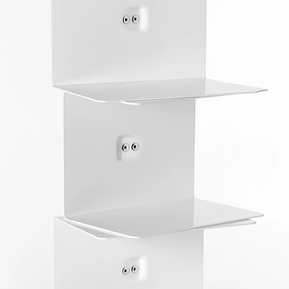 Original Ptolomeo to regał, który redefiniuje samą ideę przechowywania książek — forma ograniczona do absolutnego minimum, a jednocześnie koncepcja tak wyrazista, że stała się ikoną współczesnego designu. Smukła stalowa kolumna z subtelnymi półkami niemal znika pod ciężarem książek, pozwalając, by to one stały się głównym bohaterem kompozycji. Gdy regał wypełni się tomami, konstrukcja staje się niemal niewidoczna, a książki zdają się unosić pionowo w przestrzeni. Projekt autorstwa Bruno Rainaldiego, nagrodzony Compasso d’Oro w 2004 roku, powstał z obserwacji codziennych gestów i przekształca prosty stos książek w obiekt architektonicznej elegancji. Podpis projektanta umieszczony u podstawy podkreśla jego status dzieła designu — jednocześnie funkcjonalnego i rzeźbiarskiego. Dostępny w trzech wysokościach, regał opiera się na stabilnej podstawie ze stali nierdzewnej lub lakierowanej, dopasowanej kolorystycznie do konstrukcji. Niewielka powierzchnia, jaką zajmuje, pozwala umieścić go zarówno w klasycznych, jak i nowoczesnych wnętrzach, a różnorodne wykończenia — matowa czerń, połyskliwa biel, stal nierdzewna czy efekt cortenu — umożliwiają idealne dopasowanie do charakteru przestrzeni.