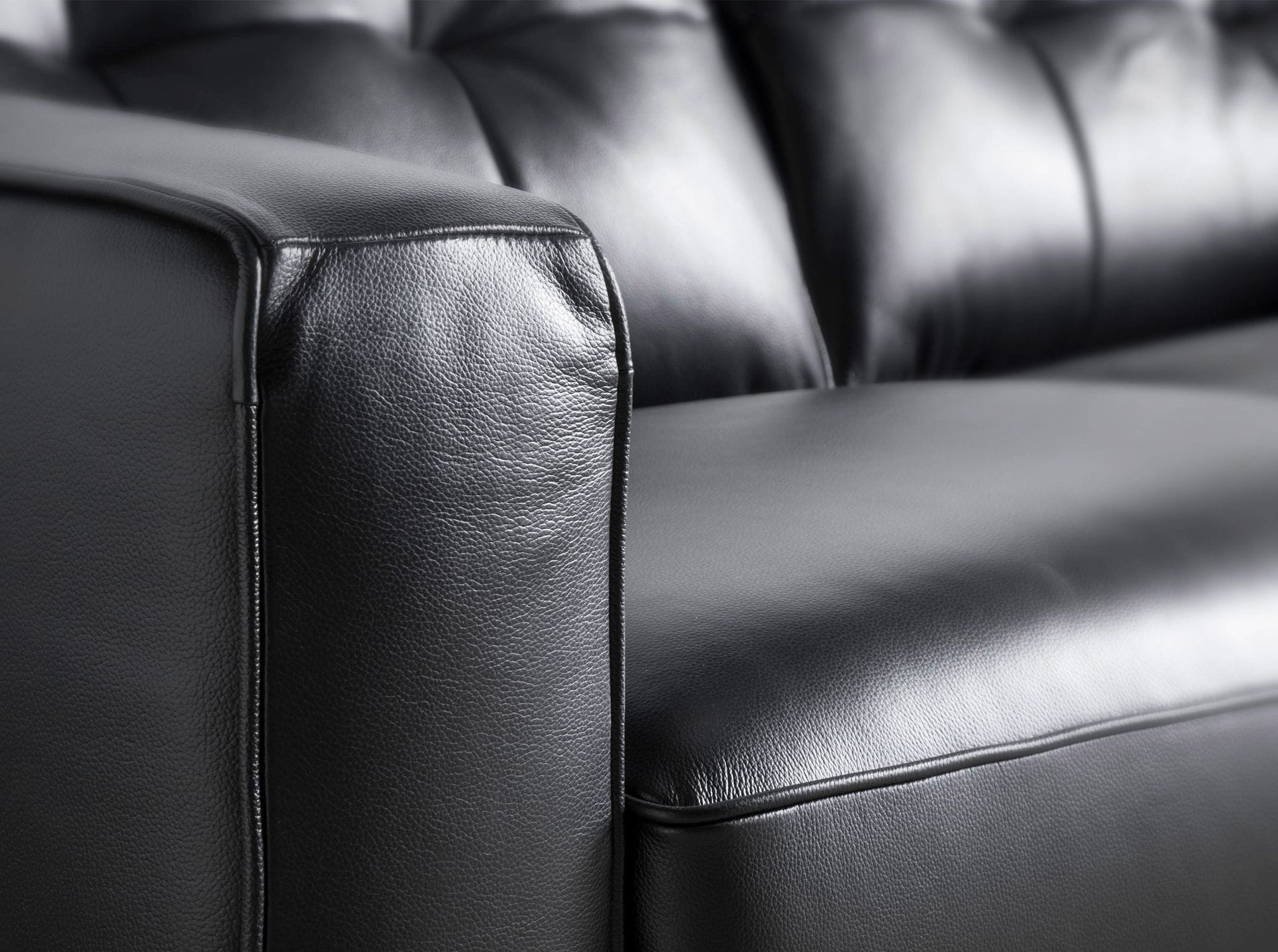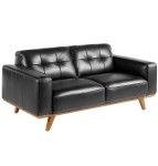 Sofa Chester o nowoczesnym wzornictwie, tapicerowana czarną skórą bydlęcą. Zarówno ze względu na styl, jak i drewniane nogi w kolorze orzecha, ta sofa wniesie odrobinę