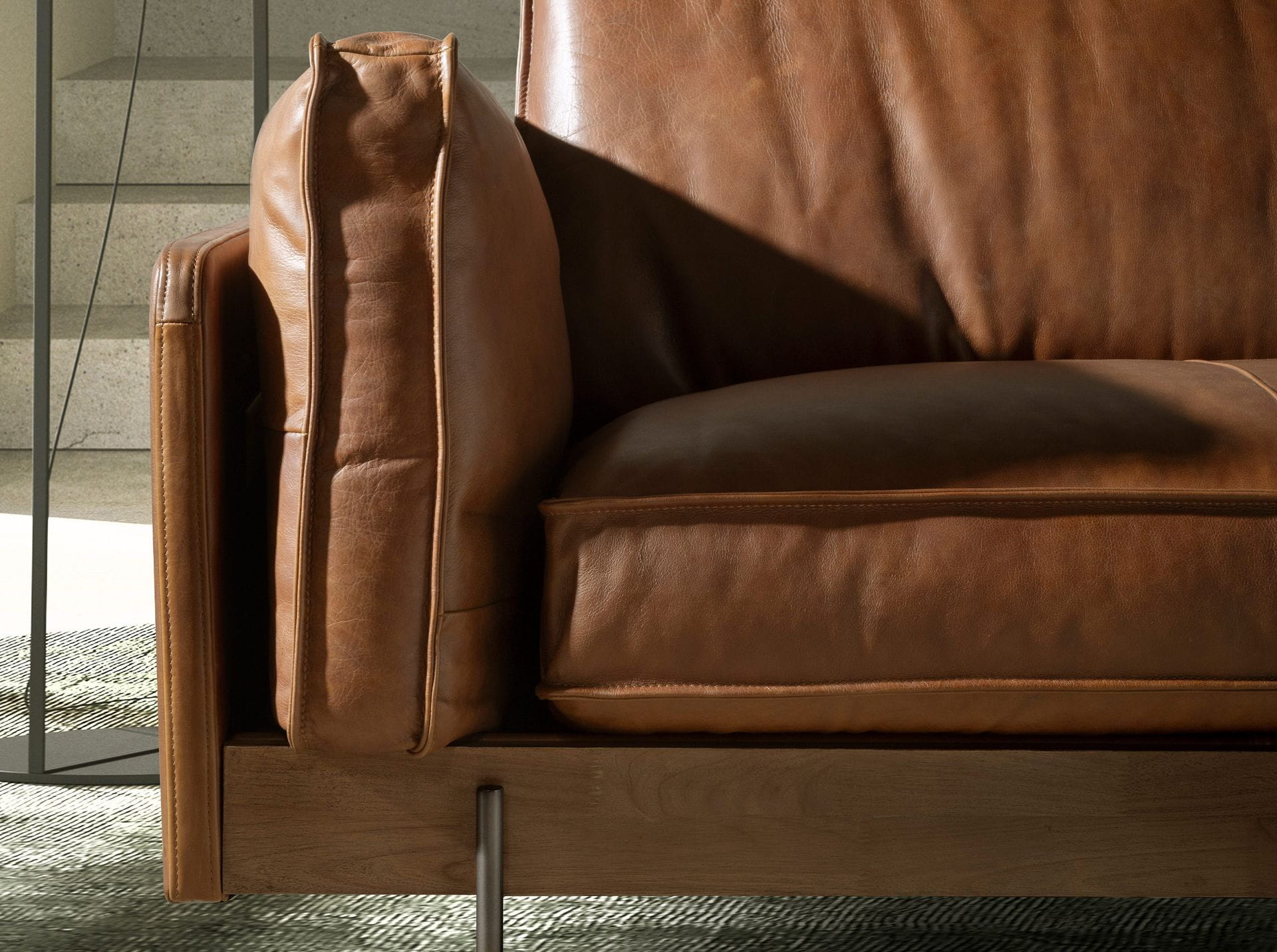 Nowoczesna forma spotyka się tutaj z klasycznym wykończeniem, tworząc sofę, która zachwyca minimalistyczną sylwetką i elegancją naturalnej skóry. Proste linie, subtelnie zaokrąglone podłokietniki i niskie, metalowe nóżki tworzą kompozycję, która idealnie odnajdzie się zarówno w surowym lofcie, jak i w ciepłym, przytulnym wnętrzu w stylu mid-century modern. Tapicerka w odcieniu czekoladowego brązu wprowadza do przestrzeni spokój, głębię i ponadczasowy charakter. Sofa została zaprojektowana z myślą o codziennym komforcie – szerokie siedziska, grube poduchy oparcia i solidna konstrukcja gwarantują wygodę, która nie przemija. To mebel, który nie dominuje wnętrza, ale stanowi jego wyrafinowany punkt odniesienia.