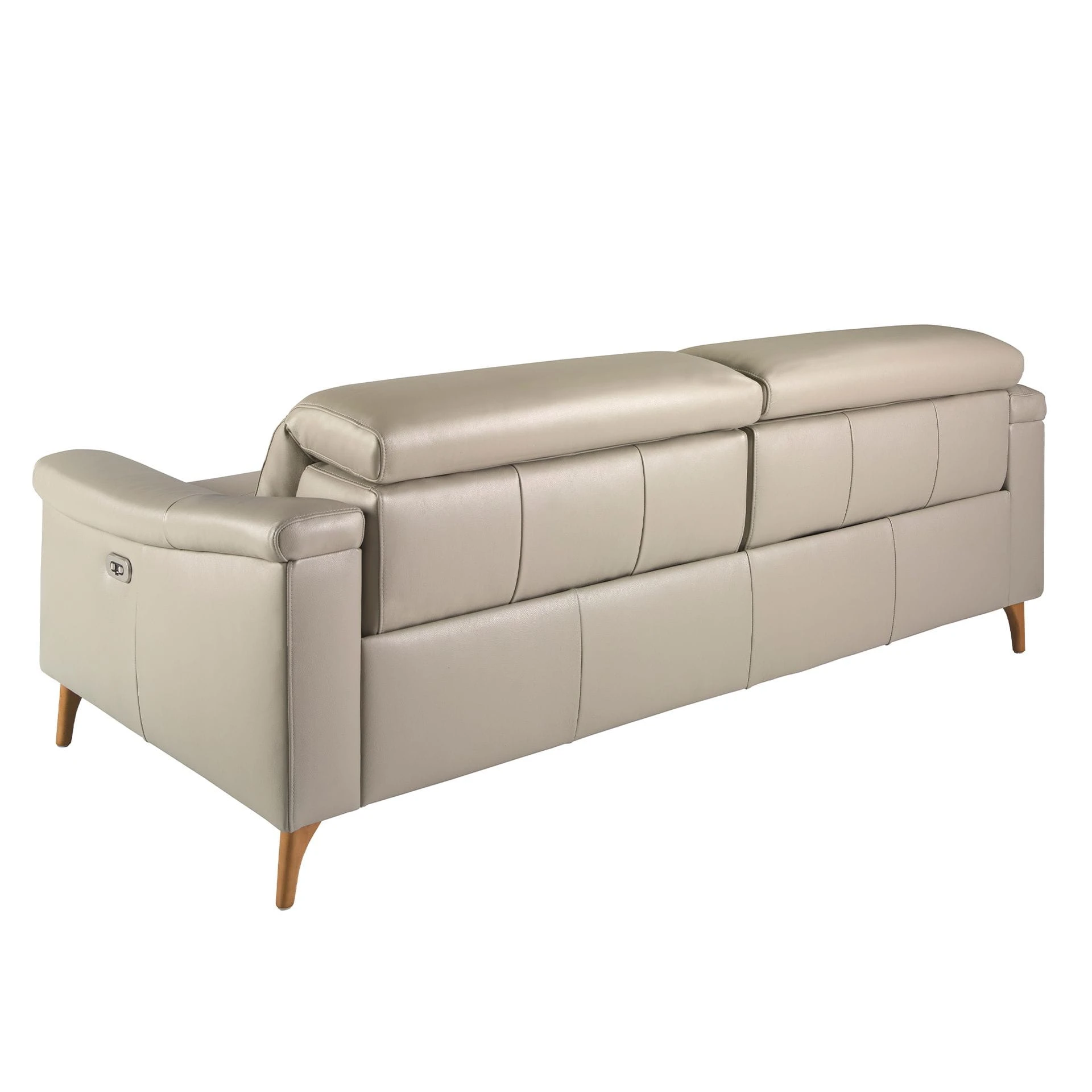 Minimalistyczna forma, miękka skóra w eleganckim odcieniu taupe oraz perfekcyjnie wyprofilowane siedziska tworzą harmonijną całość, która zachwyca prostotą i komfortem. Dzięki elektrycznie sterowanym funkcjom relaksu oraz regulowanym zagłówkom, sofa pozwala na idealne dopasowanie do chwili odpoczynku czy wieczoru z książką. Subtelne, metalowe nogi nadają bryle lekkości i współczesnego charakteru, podkreślając nowoczesną estetykę mebla. To doskonała propozycja dla osób, które cenią sobie wysoką jakość wykonania, wygodę i ponadczasową elegancję.