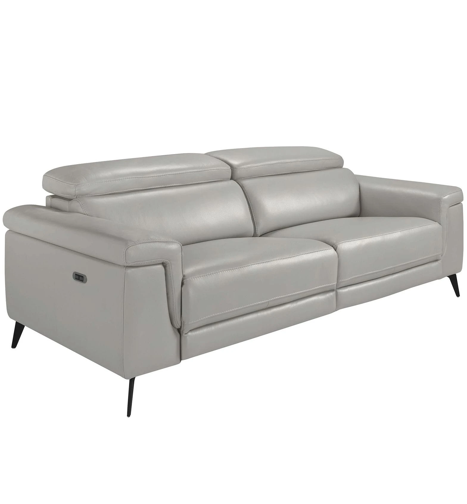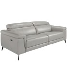 Nowoczesna forma spotyka się tu z funkcjonalnością na najwyższym poziomie. Elegancka sofa o minimalistycznym kształcie zachwyca miękką skórzaną tapicerką w subtelnym, jasnym odcieniu, który wnosi do wnętrza lekkość i świeżość. Regulowane zagłówki oraz elektrycznie sterowane podnóżki pozwalają na idealne dopasowanie pozycji do indywidualnych potrzeb użytkownika, oferując wyjątkowy komfort wypoczynku. Delikatnie wyprofilowane podłokietniki i smukłe, metalowe nogi w kolorze czerni dopełniają całości, podkreślając nowoczesny charakter projektu. Idealne rozwiązanie dla tych, którzy szukają luksusu zaklętego w codziennej wygodzie.