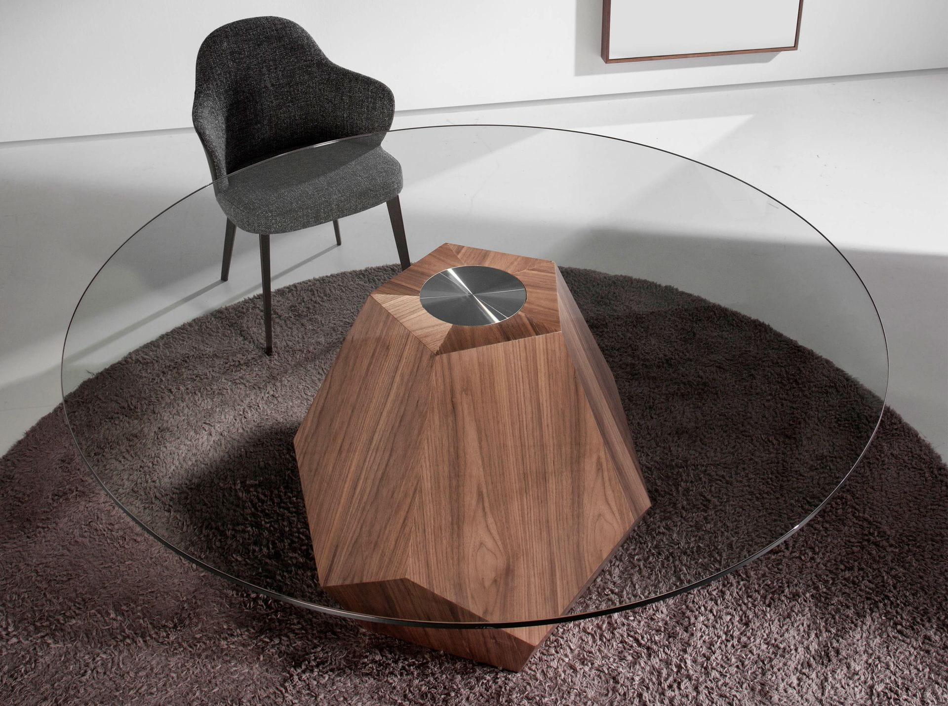 Materiał: drewno fornirowane naturalnym orzechem, szkło hartowane