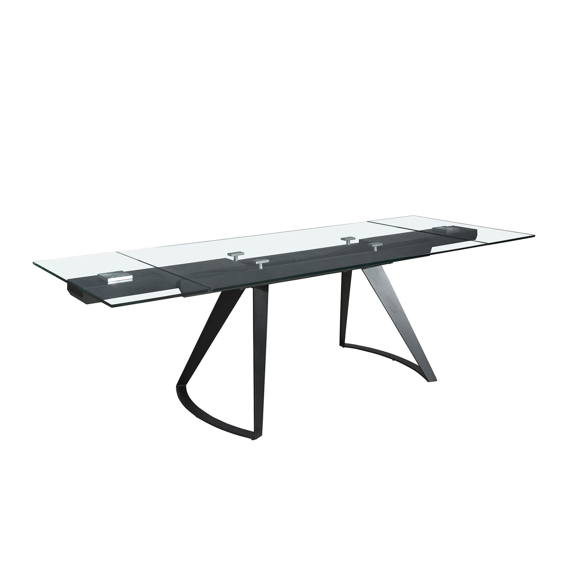 Szklany blat niczym tafla lodu – przejrzysty, lekki, niemal niewidzialny. Unosi się nad konstrukcją z czarnego metalu, która przypomina architektoniczne szkice —