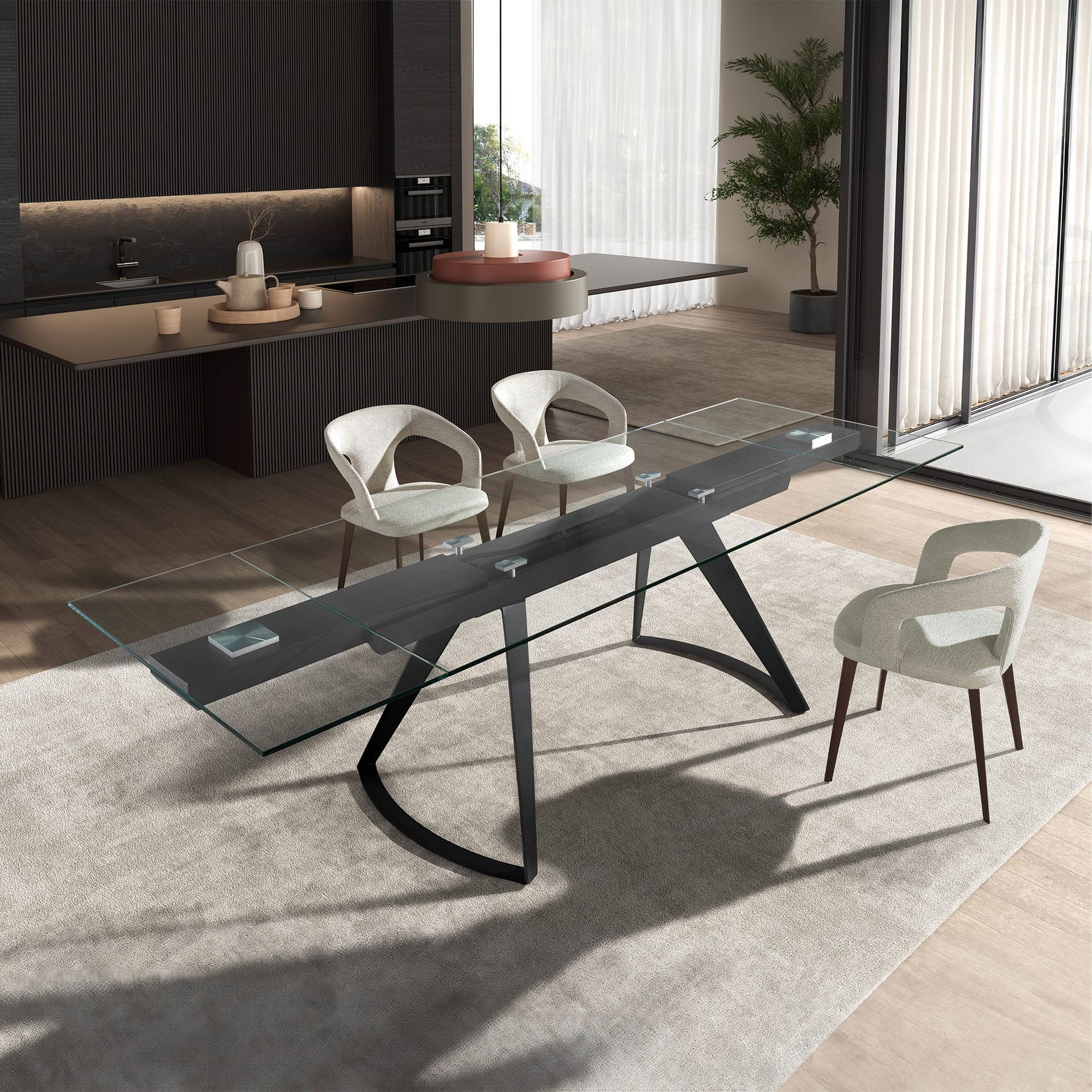 stabilna i pewna. To spotkanie szkła i stali, eteryczności z konstrukcyjną odwagą. Stół ten mówi głosem nowoczesności, gdzie każdy detal został zaprojektowany