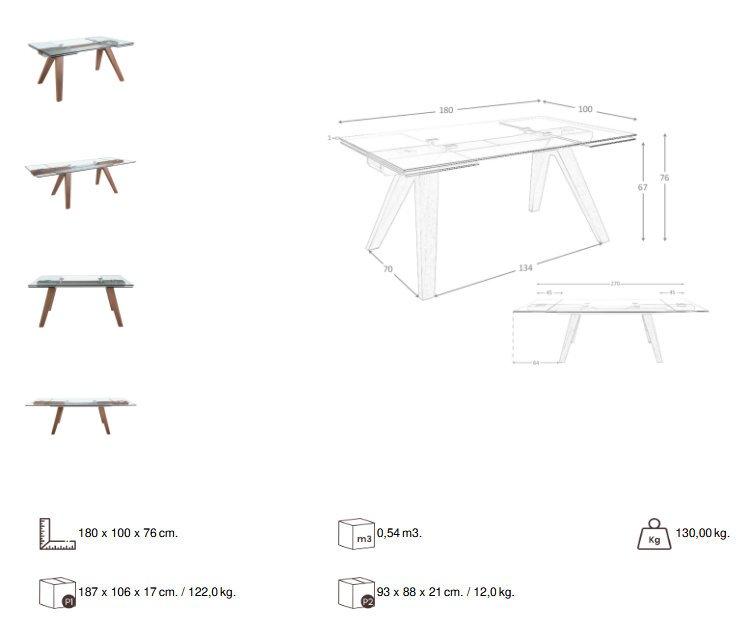 Materiał: stal nierdzewna, szkło hartowane, drewno fornirowane naturalnym orzechem