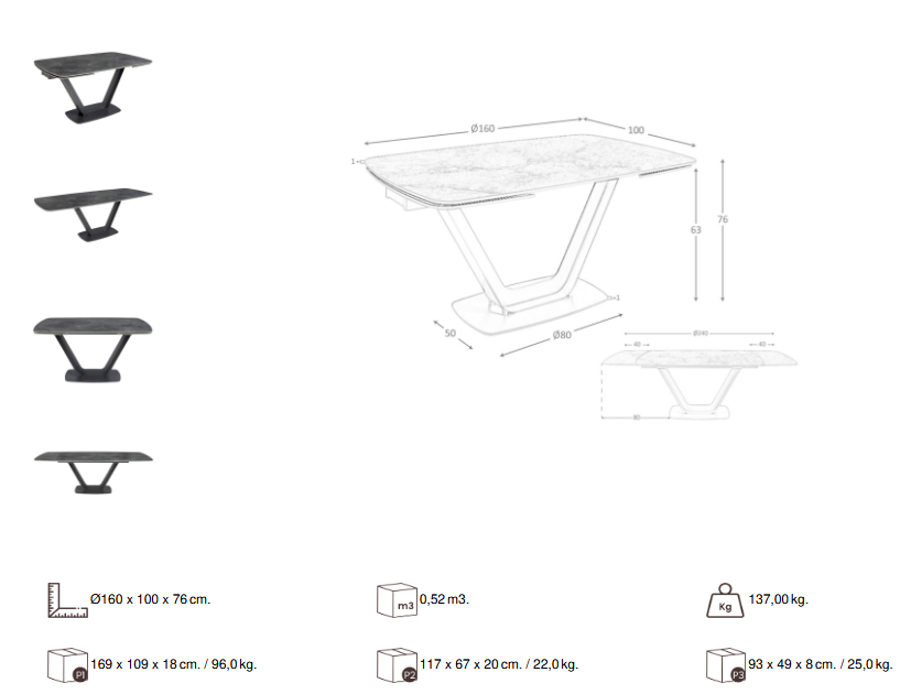 Stół, który zachwyca surową elegancją i nowoczesną harmonią formy. Na pierwszy rzut oka przyciąga wzrok głęboka, grafitowa tafla ceramicznego blatu, która subtelnie imituje strukturę naturalnego kamienia – jej wyrafinowane, delikatnie jasne żyłki malują na powierzchni misterną mapę, niczym pejzaż rysowany przez czas. Materiał ten jest jednocześnie trwały i zaskakująco przyjemny w dotyku, a satynowy połysk nadaje mu wysmakowany, luksusowy charakter. Dynamicznie wyprofilowana podstawa w kształcie odwróconej litery „V” wykonana została z metalu w matowej czerni – jej zdecydowana geometria równoważy miękko zaoblone narożniki blatu, budując harmonijny kontrast między siłą a lekkością. To wizualna gra proporcji, w której stabilność spotyka się z finezyjną formą. Zaawansowany mechanizm rozkładania pozwala płynnie powiększyć przestrzeń blatu, tak aby zmieściły się wszystkie celebracje – od codziennych posiłków po uroczyste kolacje. Rozsuwane segmenty unoszą się z wdziękiem, podkreślając nowoczesny charakter stołu i jego funkcjonalność skrojoną na potrzeby współczesnych wnętrz.