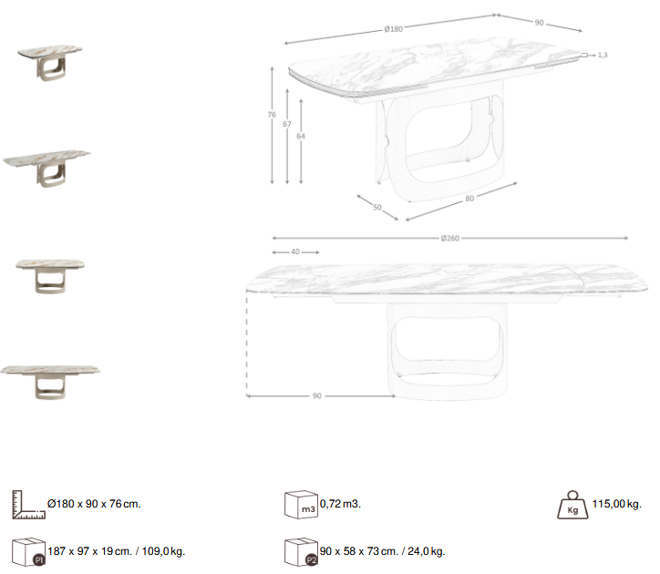 Stół rozkładany 180 - 260 cm Angel Cerda
