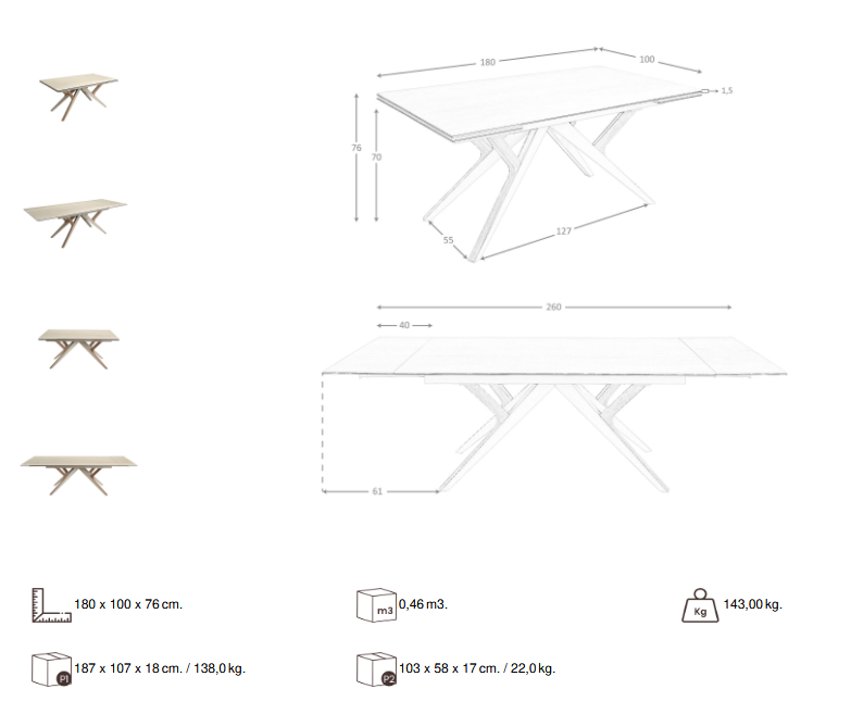 Stół rozkładany 180 - 260 cm Angel Cerda