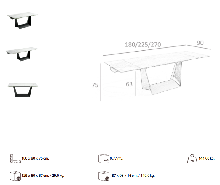 Wymiary:180 - 270 x 90 cm