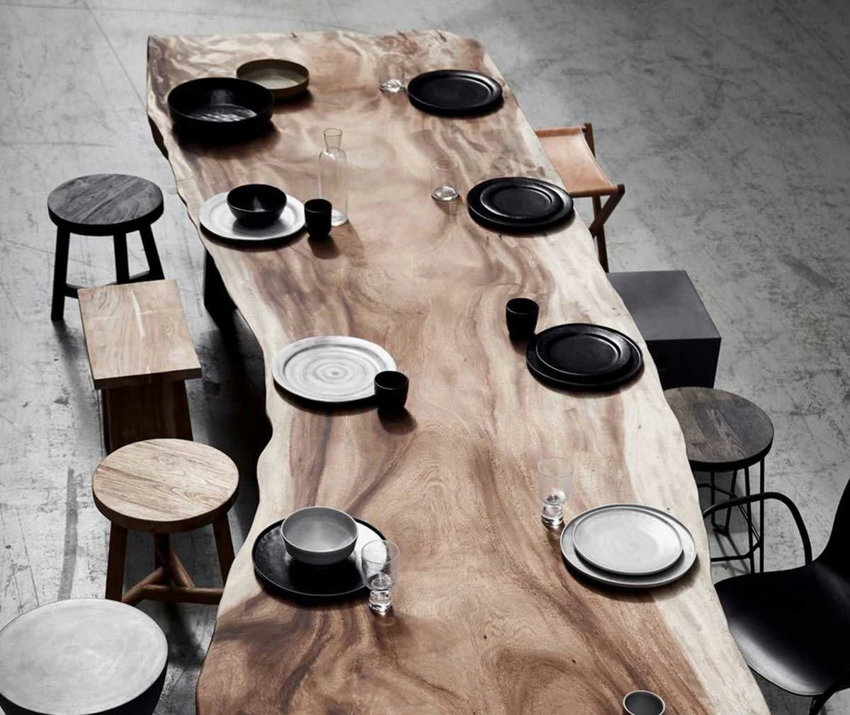 od desek do krojenia z naturalnym słojem drewna i pięknych stołów z uroczymi, szorstkimi krawędziami i niedoskonałościami, od naturalnych pęknięć