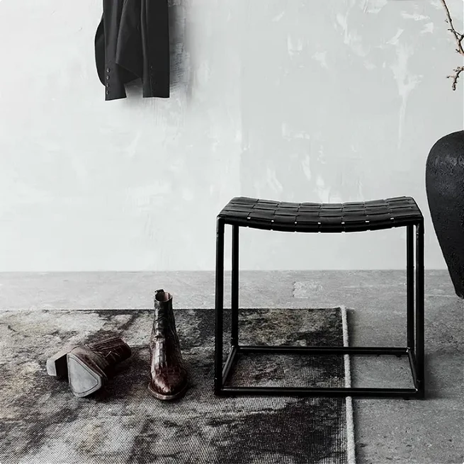 Soho to industrialna i miejska seria stołków i ławek do wnętrz, które posiadają eleganckie wykończenia na złączach oraz na siedzisku z plecionej skóry. Soho to piękna kompozycja solidnej, żelaznej ramy pomalowanej na czarno w połączeniu ze wspaniałym plecionym siedziskiem z czarnej skóry bawolej.
