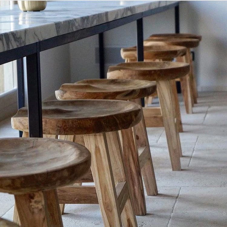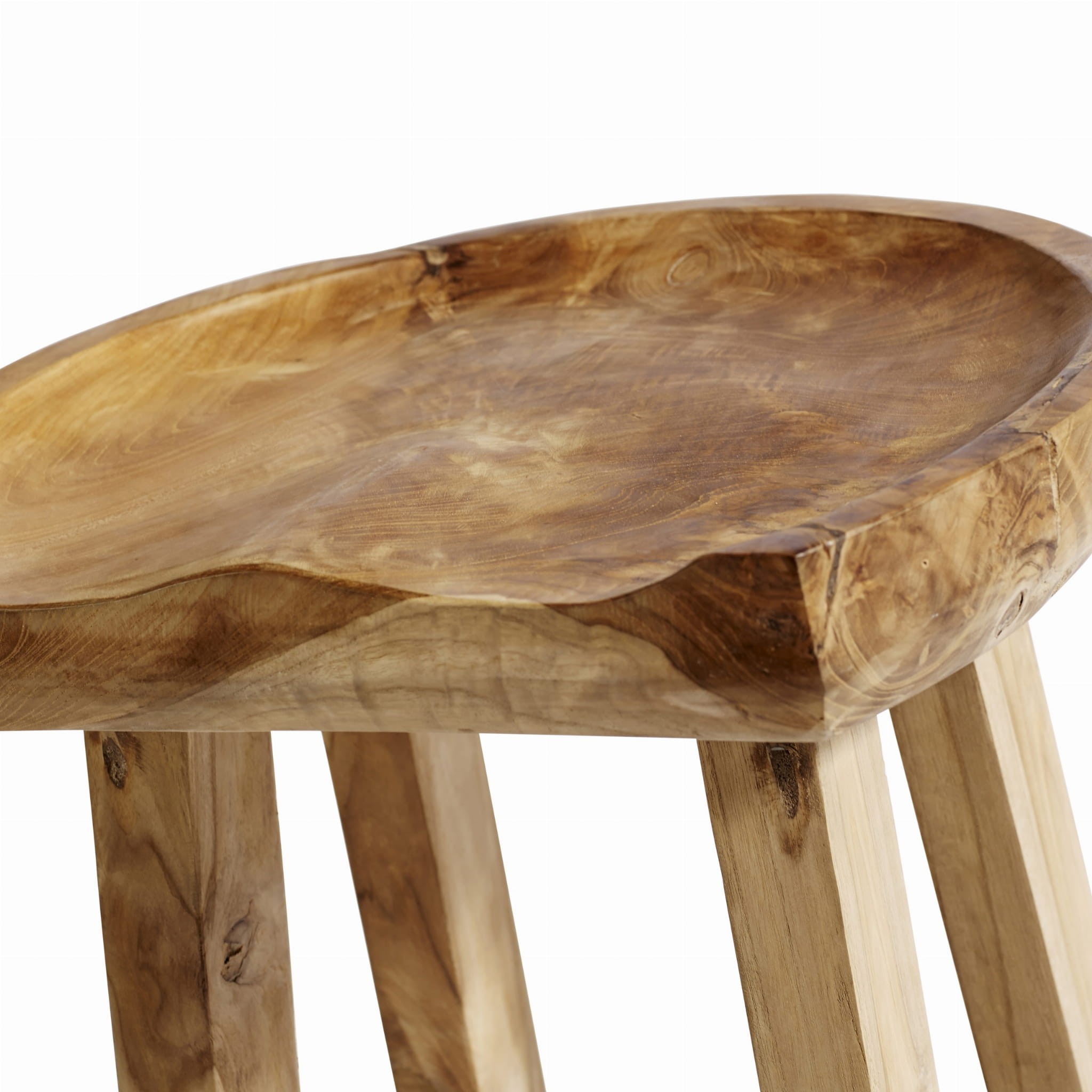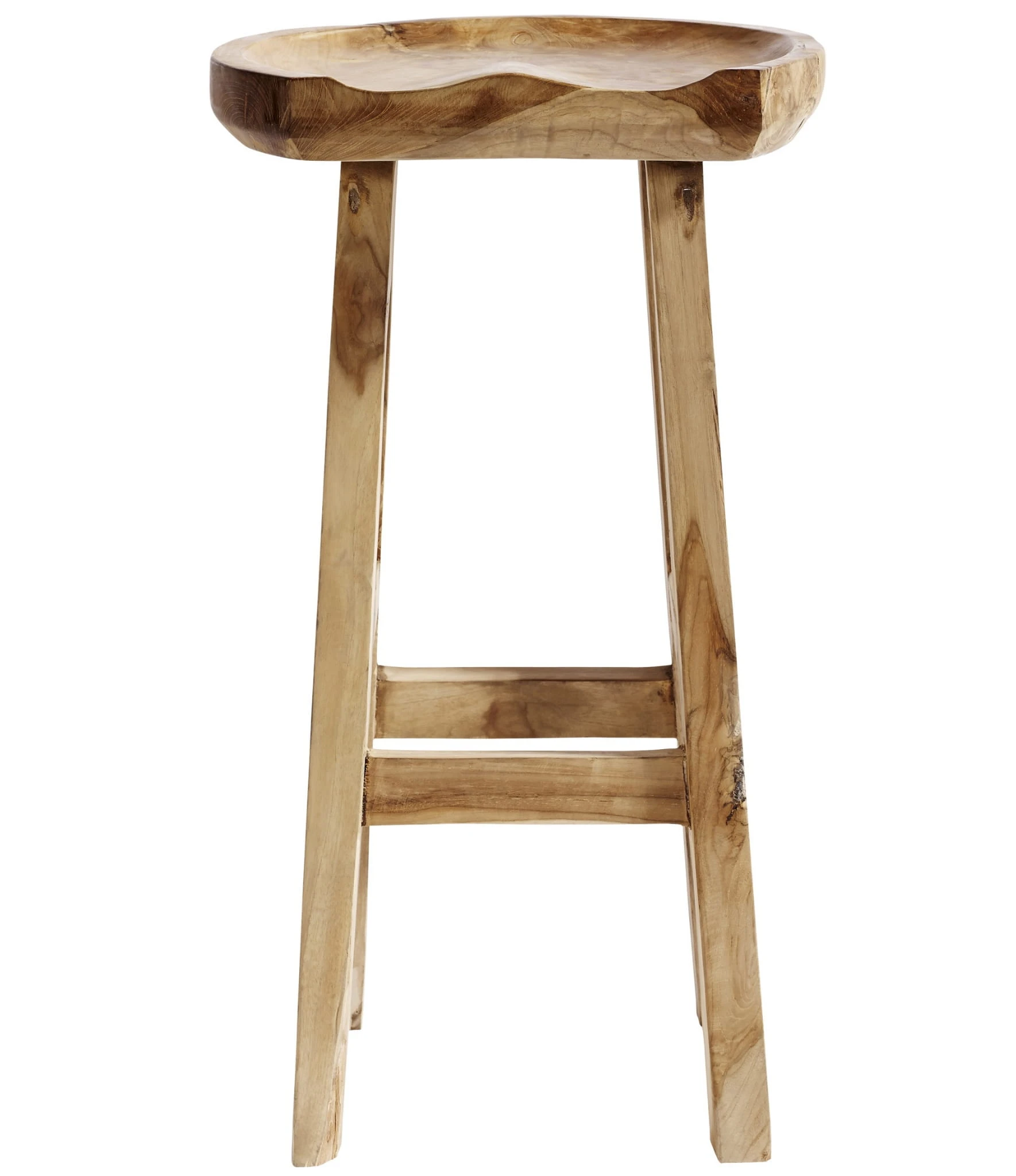 Piękny i ekskluzywny stołek barowy z surowego drewna tekowego, który nadaje wnętrzu naturalny i niepowtarzalny wygląd. Muubs tworzy przedmioty dla domu, które charakteryzują się kunsztem wykonania i emanują autentycznością. Każdy produkt ma duszę i inną historię:
