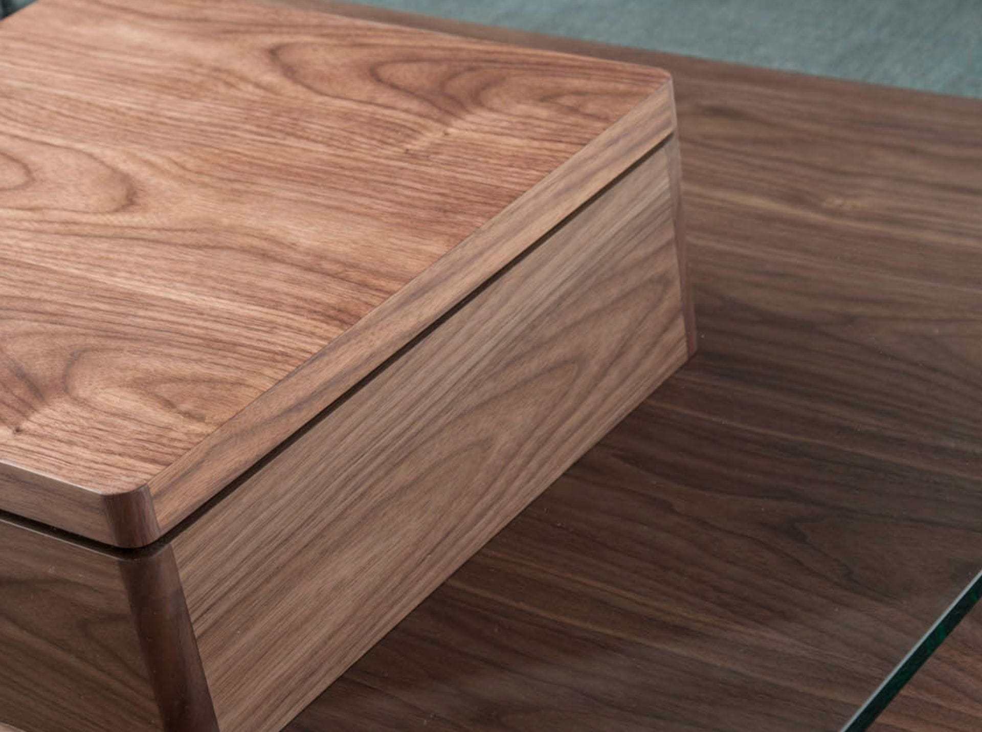 Materiał: szkło hartowane, drewno fornirowane naturalnym orzechem