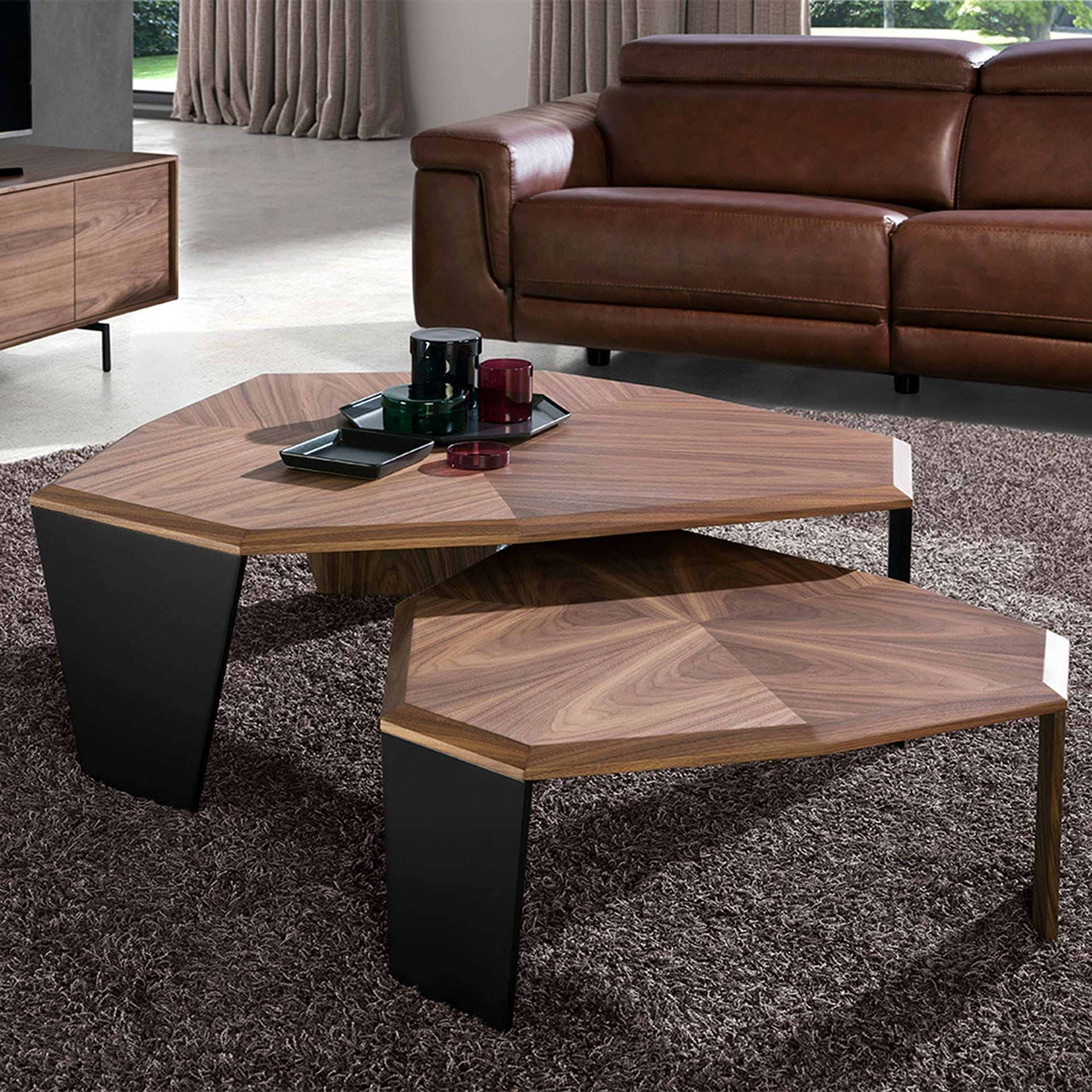 fornirowanego naturalnym orzechem. Stolik o prostym, ale oryginalnym designie, który doda niepowtarzalnego i osobistego charakteru.